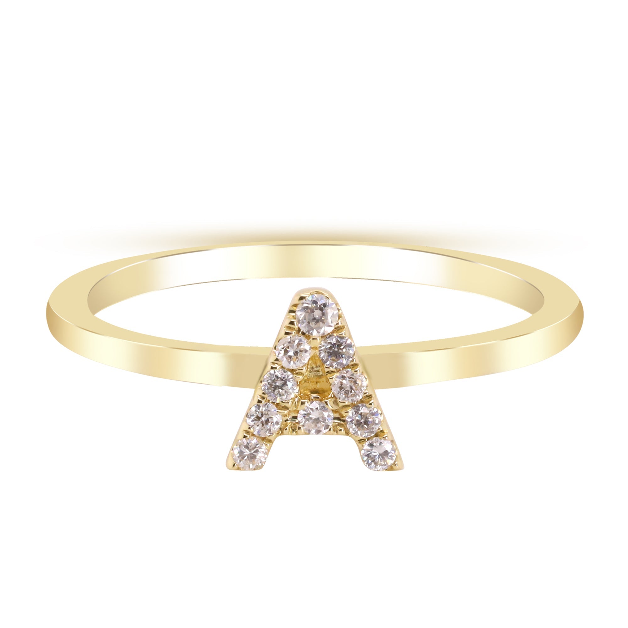A Initial 14K Yellow Gold Round-Cut White Diamond Ring