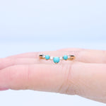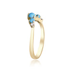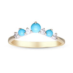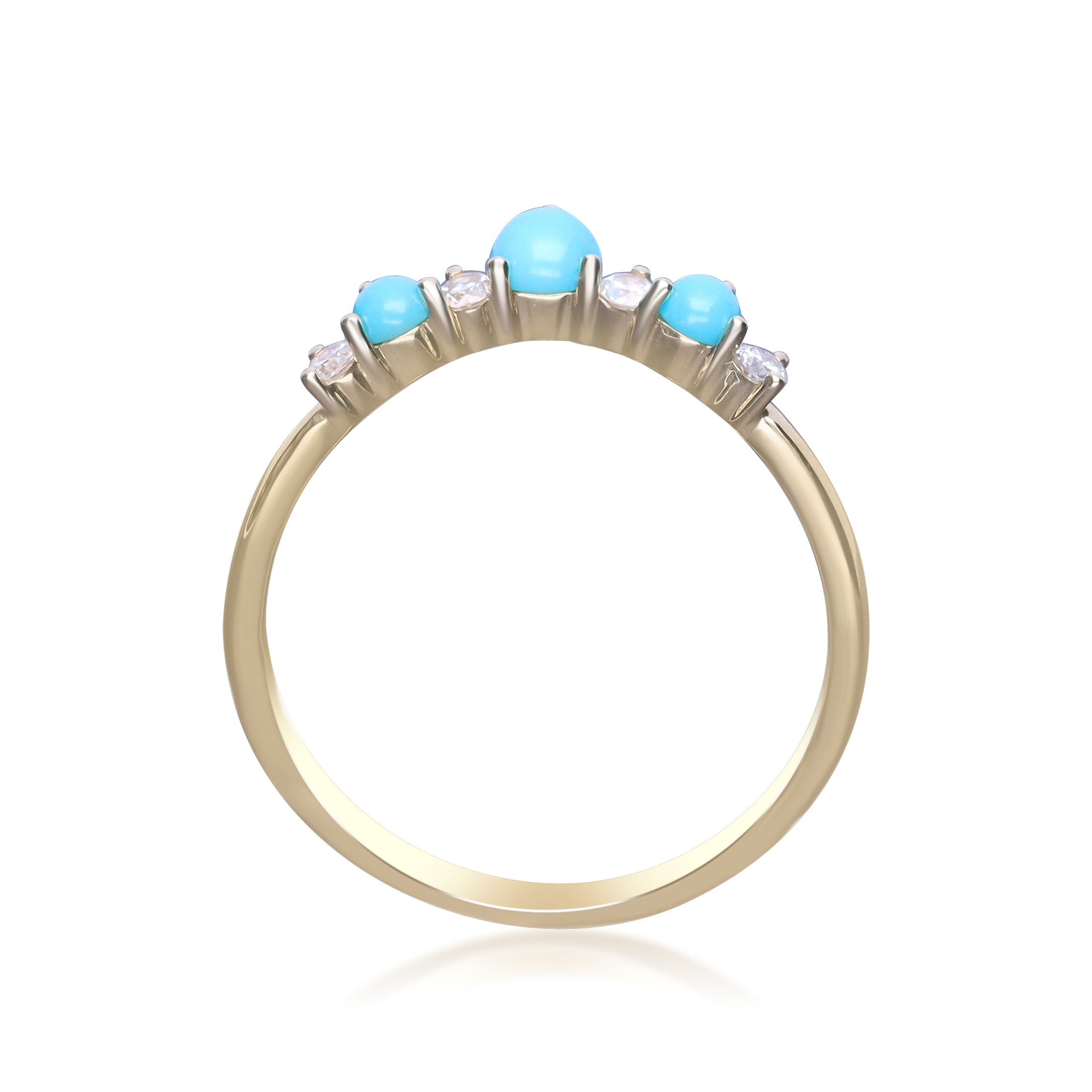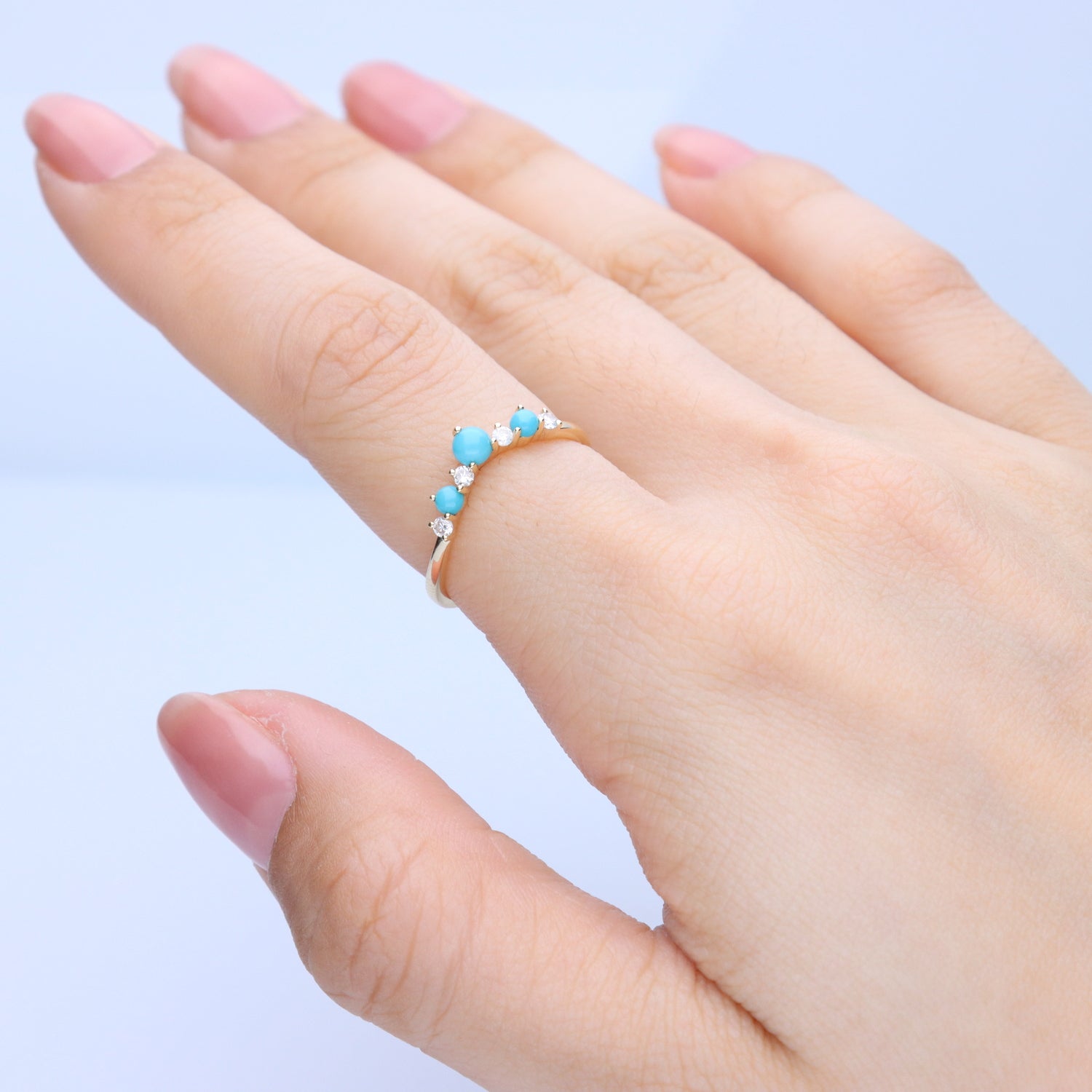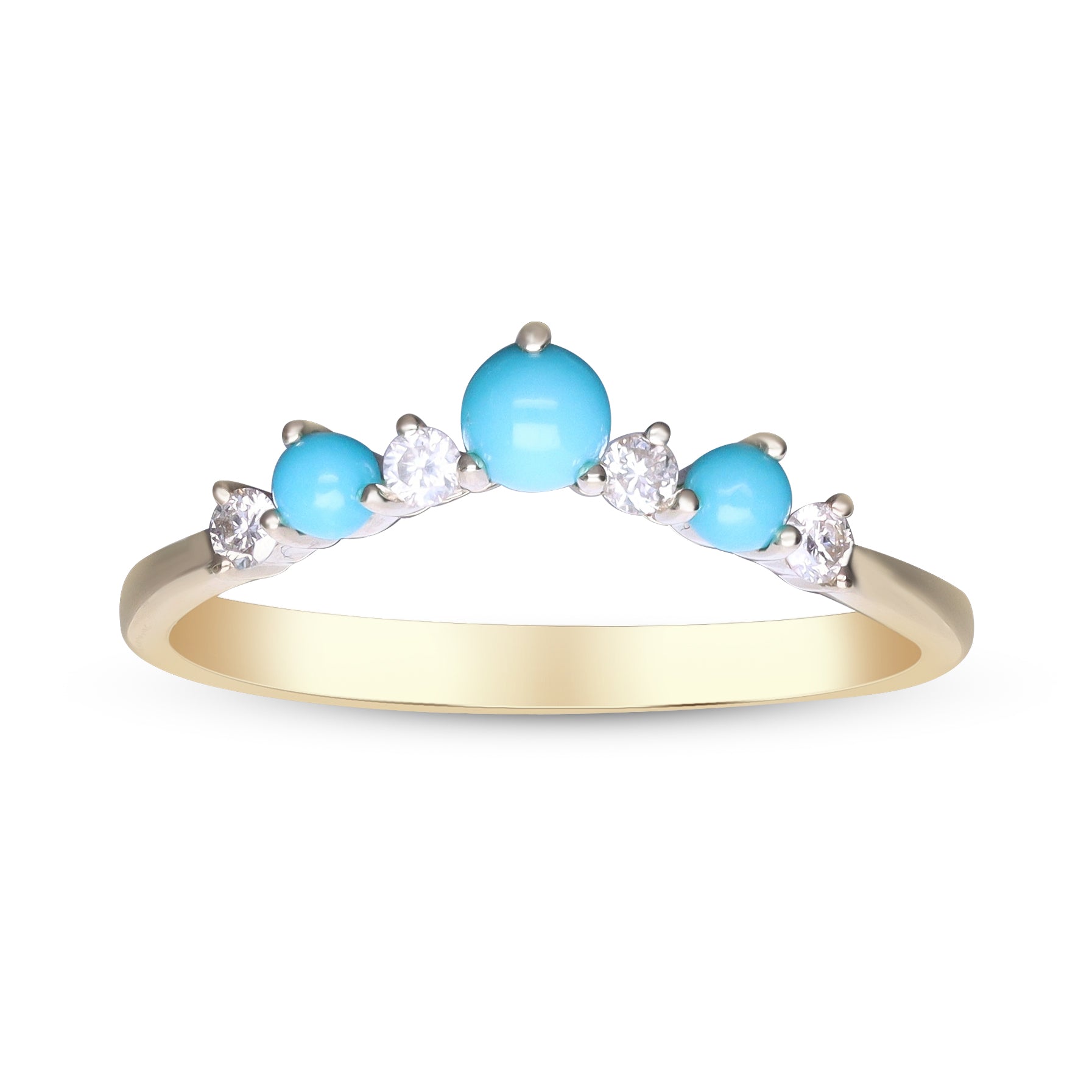 Decorate yourself in elegance with this Ring is crafted from 10K Yellow Gold Round-Cut Turquoise (2 pcs) 0.14 carat, Round-Cut Turquoise (1 pcs) 0.18 carat and Round-cut White Diamond (4 Pcs) 0.10 Carat. This Ring is weight 1.37 grams. This delicate Ring is polished to a high finish shine.