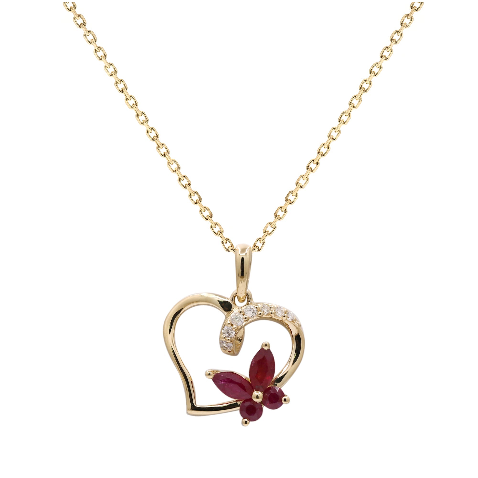 Butterfly Heart 14K Yellow Gold Mozambique Ruby Pendant