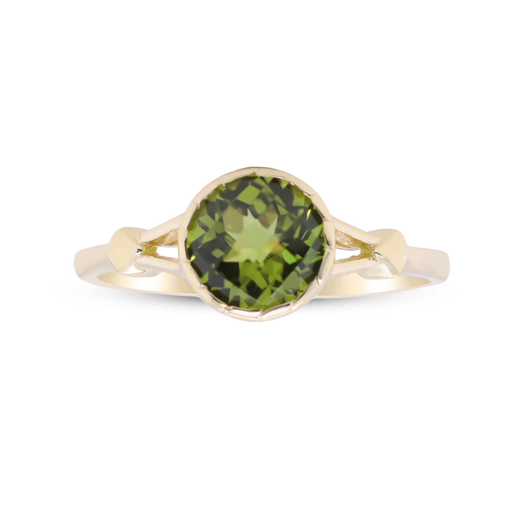 Decorate yourself in elegance with this Ring is crafted from 14-karat Yellow gold 7.0 mm Round-cut Manchurian Peridot (1 pcs) 1.49 carat. This Ring is weight 1.92 grams. This delicate Ring is polished to a high finish shine.