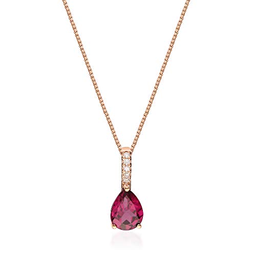 Stunning, timeless and classy eternity Unique Pendant. Decorate yourself in luxury with this Gin & Grace Pendant. The 10K Rose Gold jewelry boasts Pear-Cut Prong Setting Raspberry color Natural Madagascar Rhodolite Garnet (1 pc) 1.17 Carat, along with Natural Round cut white Diamond (5 Pcs) 0.04 Carat , accent stones for a lovely design. This Pendant is weight 0.56 grams. Crafted with 10K Rose Gold, this delicate Pendant is polished to a high finish shine.
