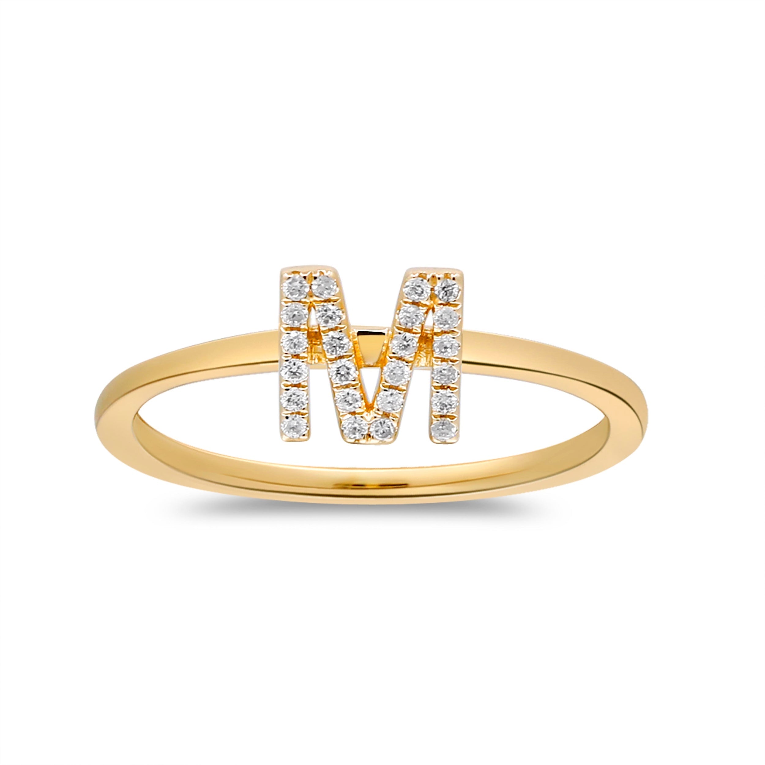 M Initial 14K Yellow Gold Round-Cut White Diamond Ring