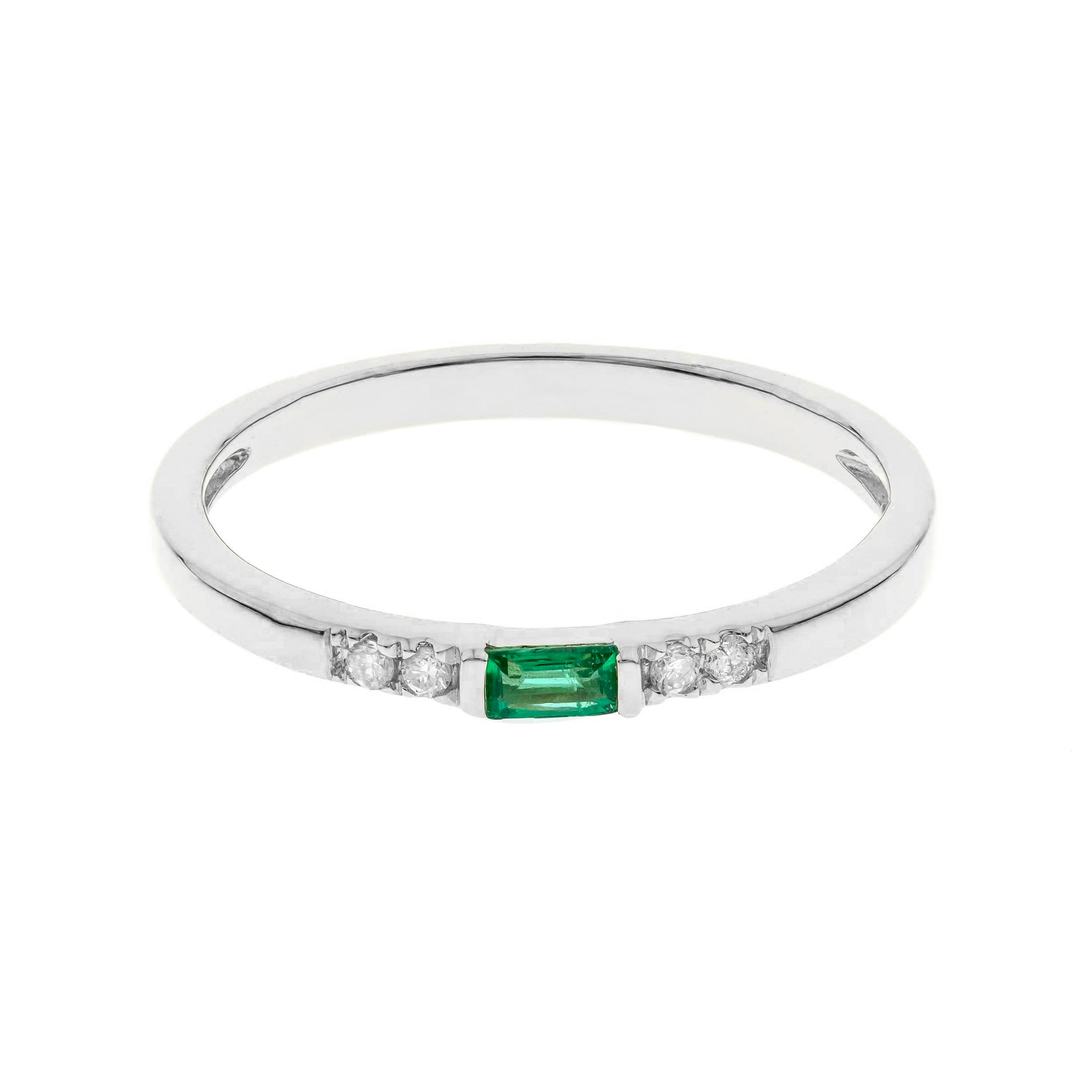 Stunning, timeless and classy eternity Unique Ring. Decorate yourself in luxury with this Gin & Grace Ring. The 10K White Gold jewelry boasts Emerald-Cut Prong Setting Natural Emerald (1 pc) 0.10 Carat, along with Natural Round cut white Diamond (4 Pcs) 0.04 Carat, accent stones for a lovely design. This Ring is weight 1.58 grams. Crafted with 10K White Gold, this delicate Ring is polished to a high finish shine.