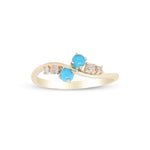 Decorate yourself in elegance with this Ring is crafted from 10K Yellow Gold 3.0 mm Round-cut Arizona Turquoise (2 pcs) 0.29 carat and Round-Cut white diamond (4 pcs) 0.11 carat. This Ring is weight 1.51 grams. This delicate Ring is polished to a high finish shine.