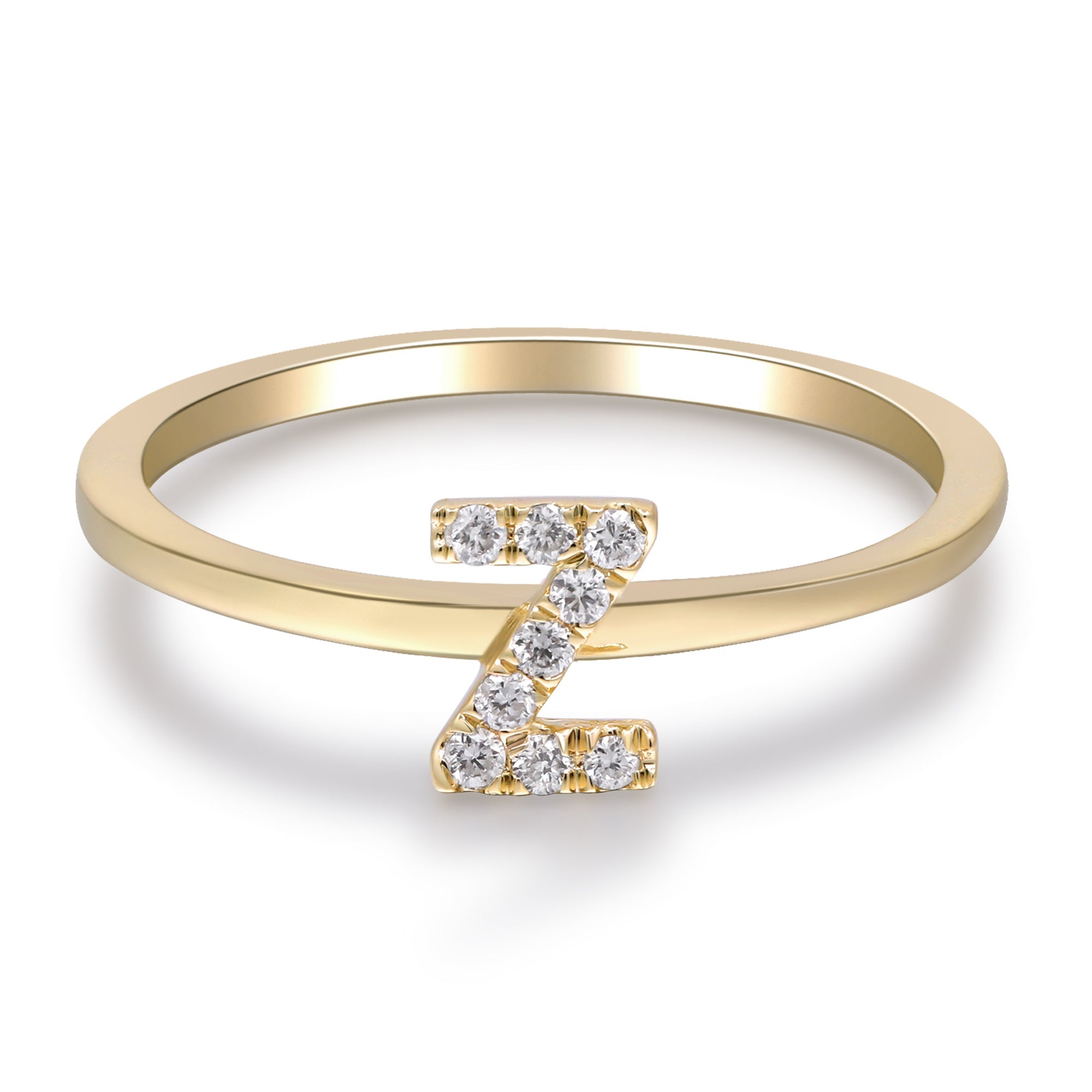 Z Initial 14K Yellow Gold Round-Cut White Diamond Ring