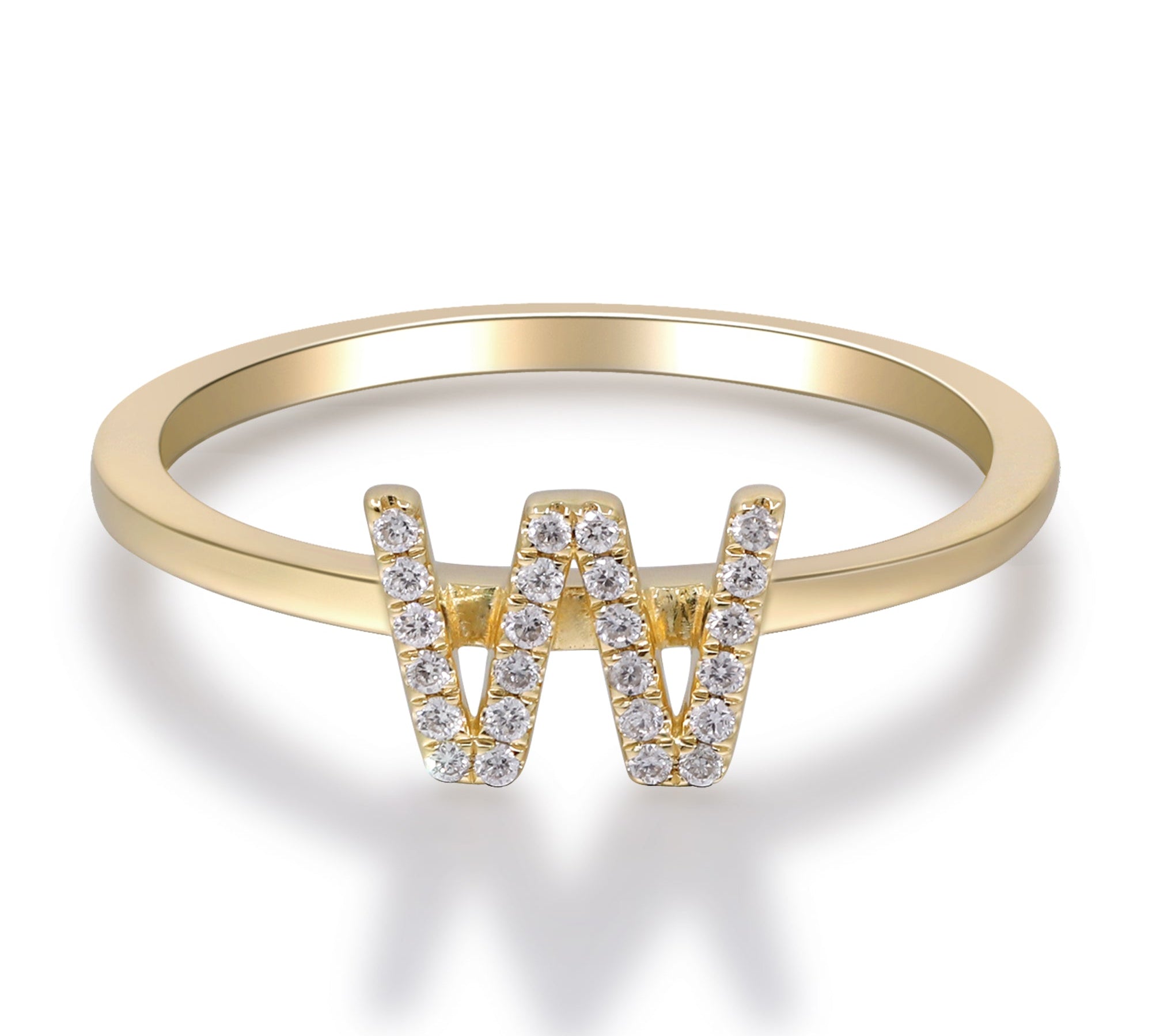 W Initial 14K Yellow Gold Round-Cut White Diamond Ring