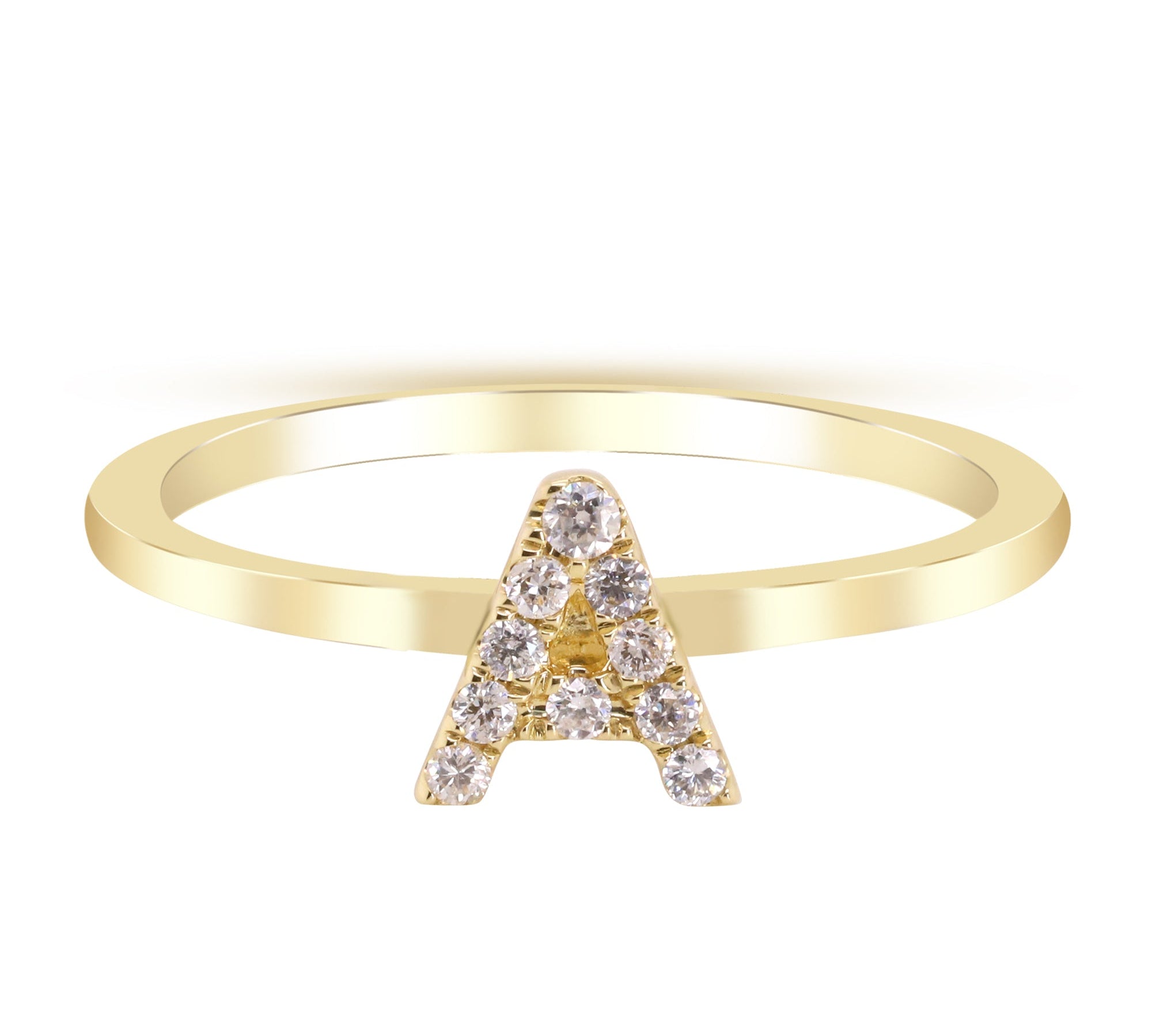 A Initial 14K Yellow Gold Round-Cut White Diamond Ring