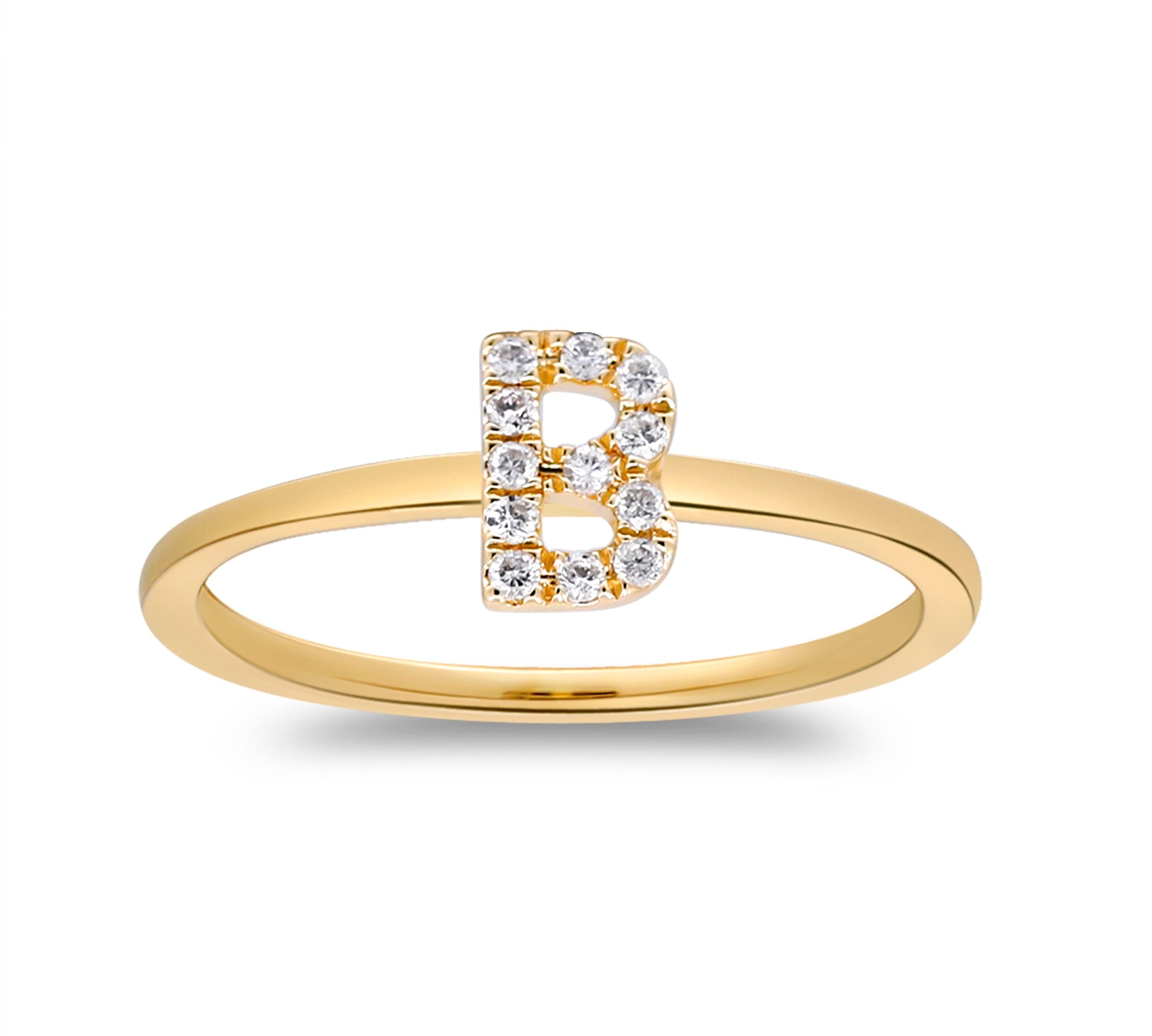 B Initial 14K Yellow Gold Round-Cut White Diamond Ring