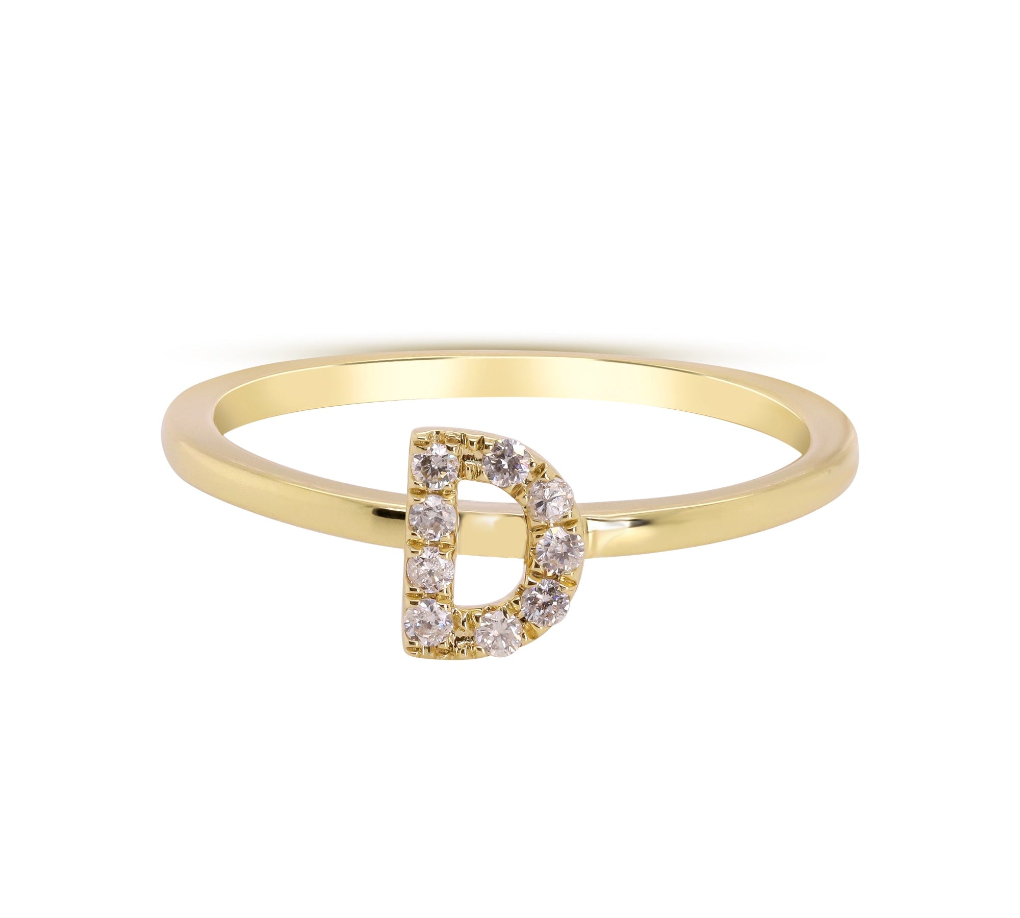 D Initial 14K Yellow Gold Round-Cut White Diamond Ring