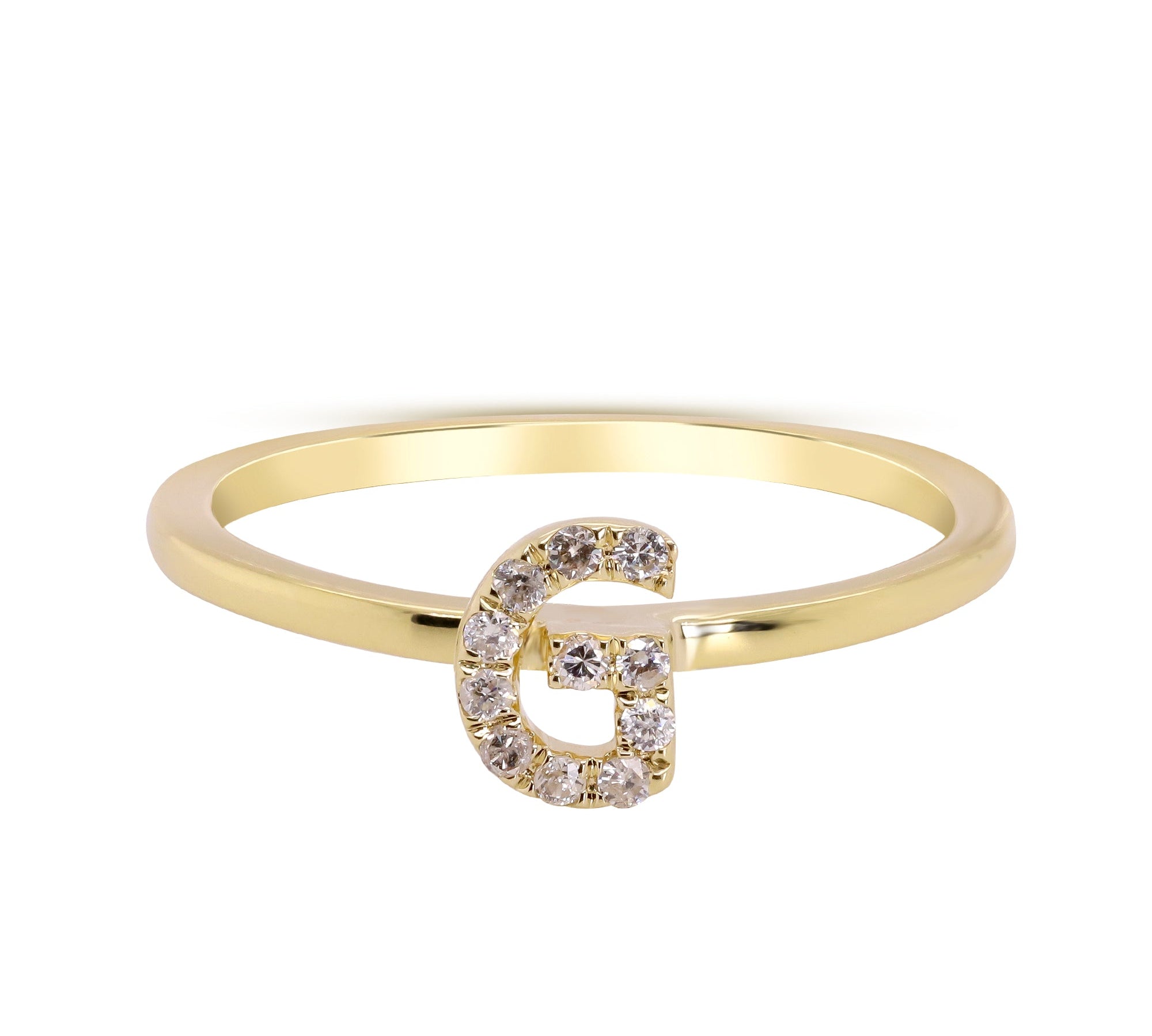 G Initial 14K Yellow Gold Round-Cut White Diamond Ring