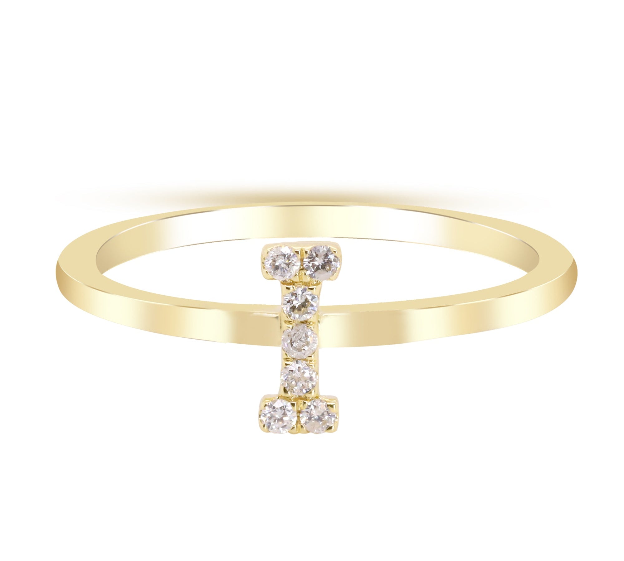I Initial 14K Yellow Gold Round-Cut White Diamond Ring