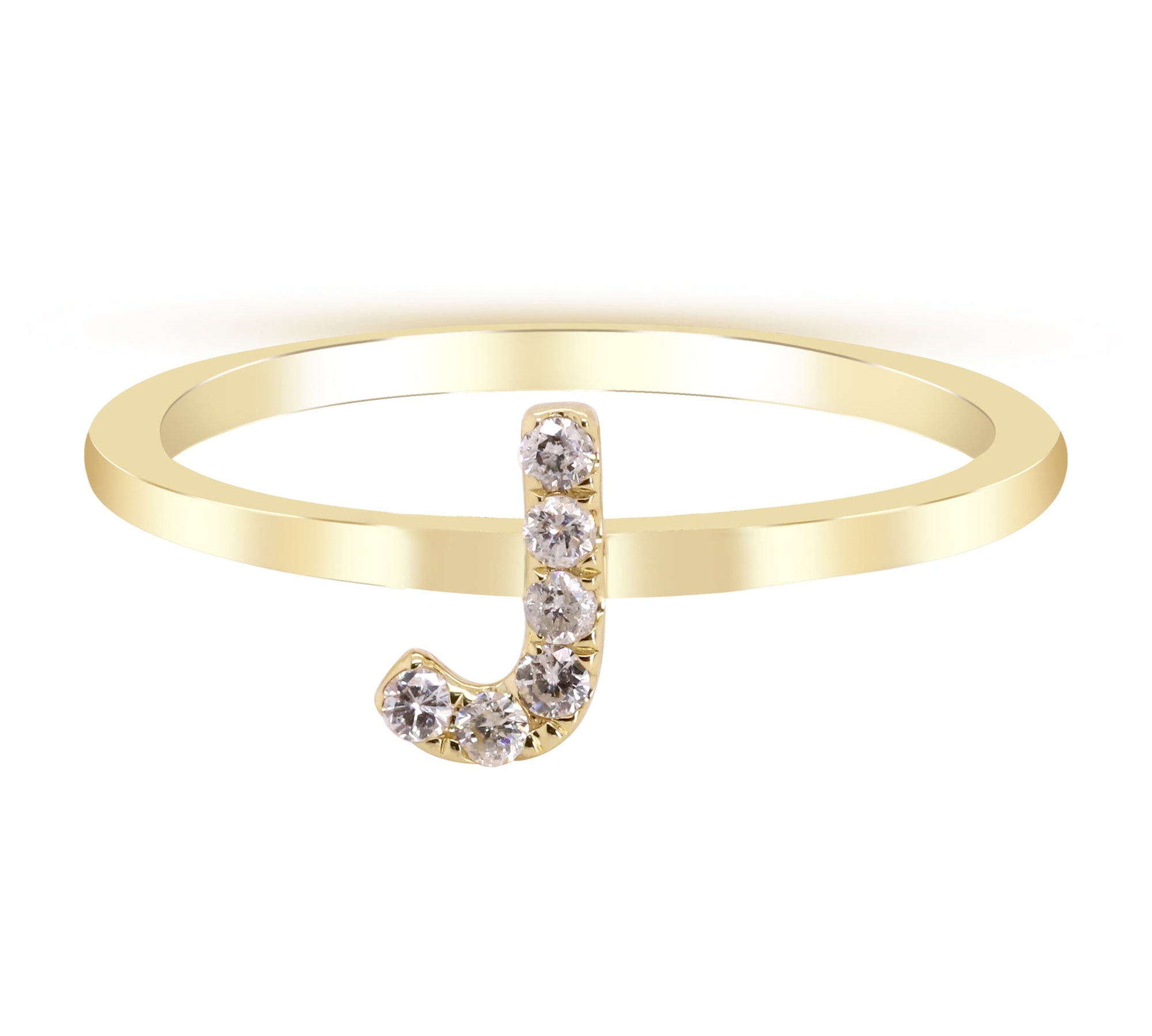 J Initial 14K Yellow Gold Round-Cut White Diamond Ring