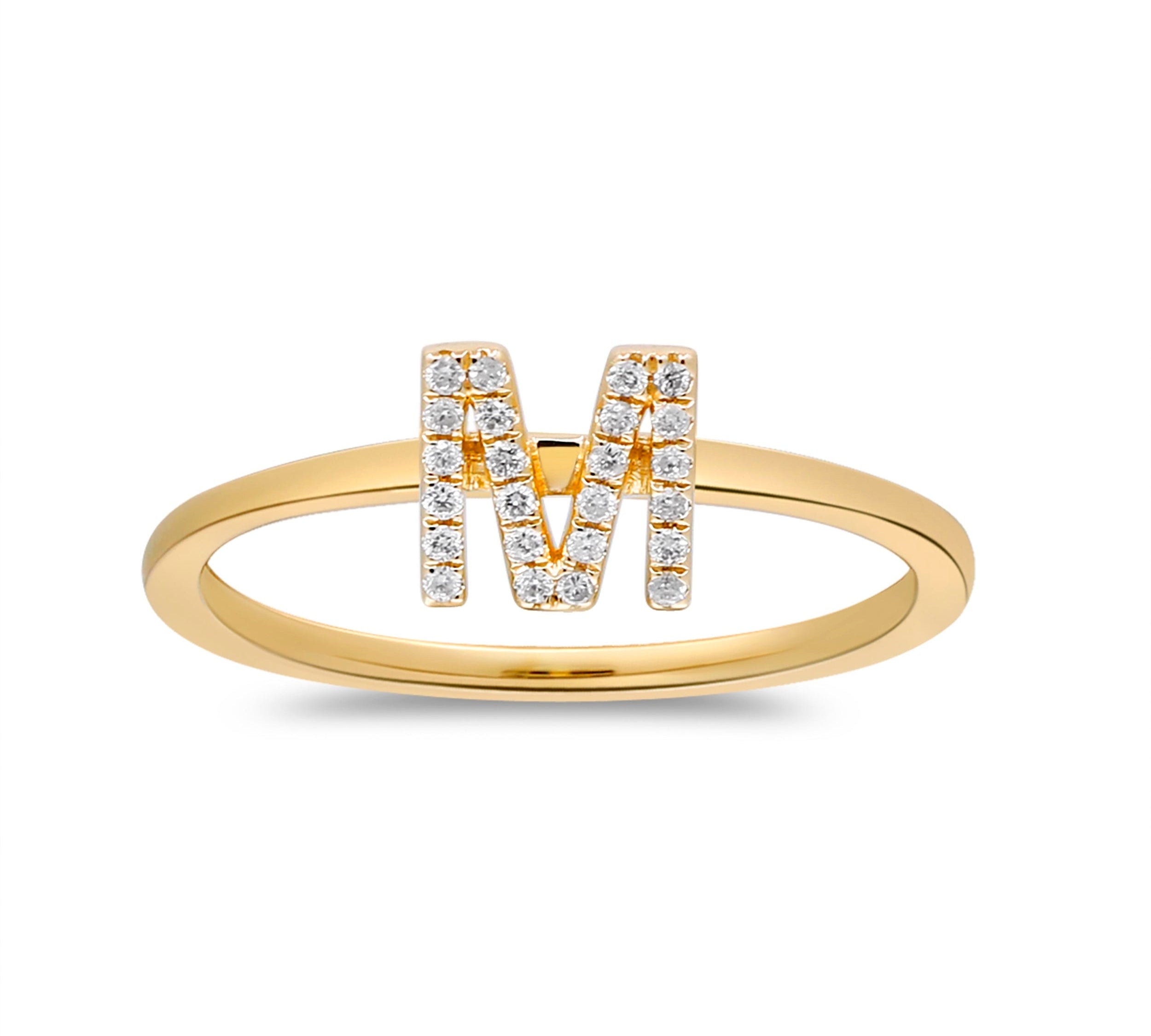 M Initial 14K Yellow Gold Round-Cut White Diamond Ring