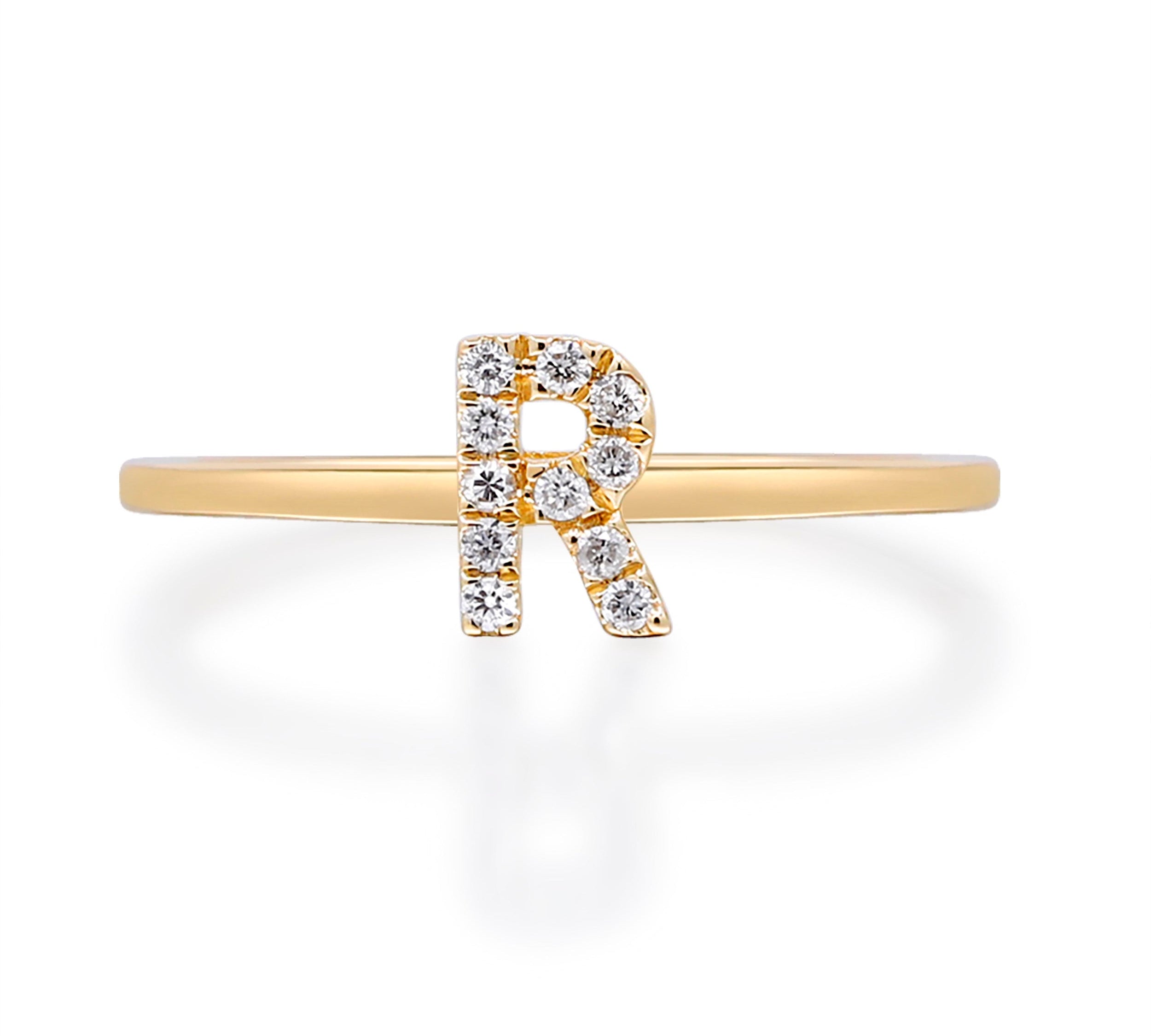 R Initial 14K Yellow Gold Round-Cut White Diamond Ring