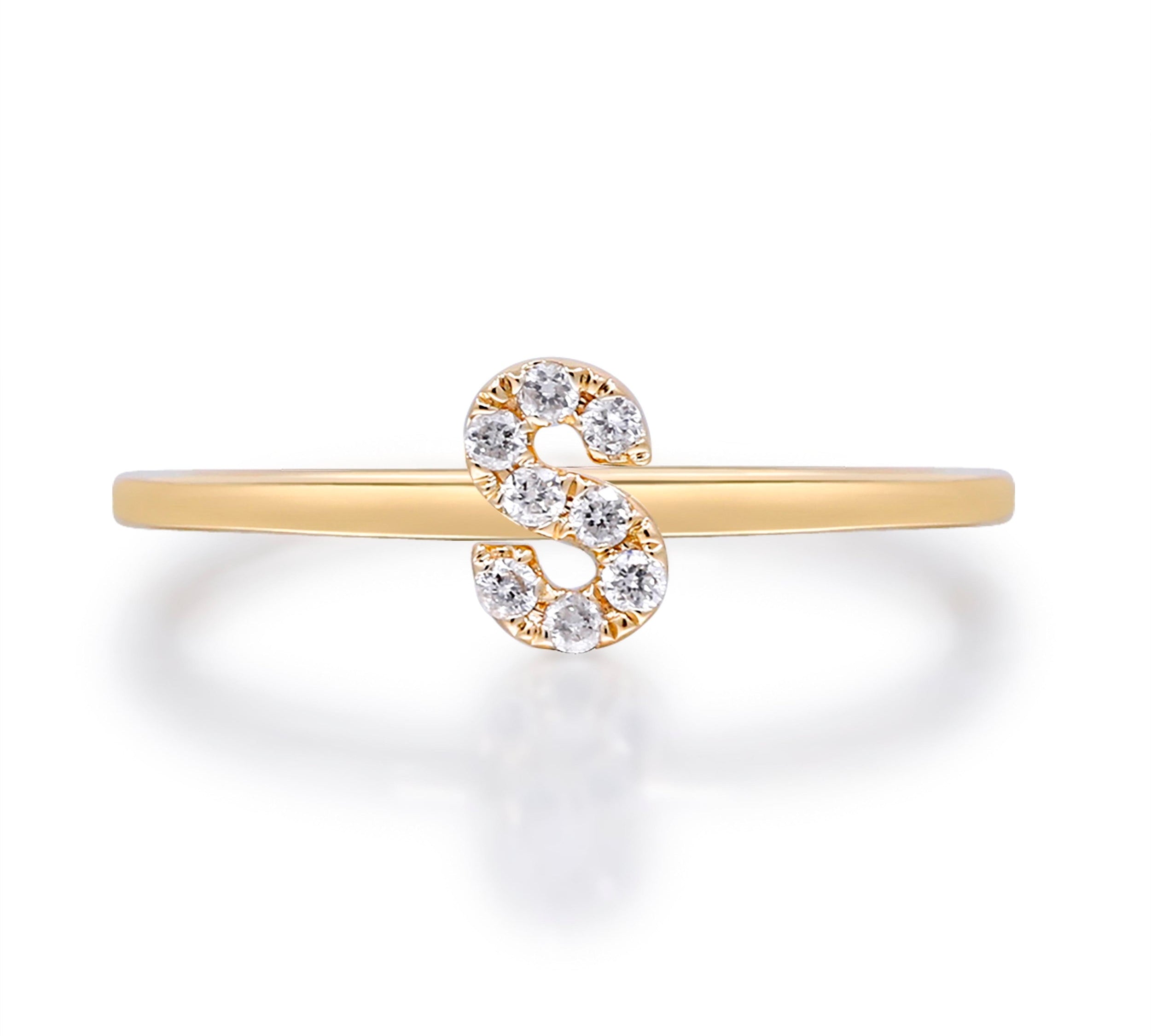 S Initial 14K Yellow Gold Round-Cut White Diamond Ring