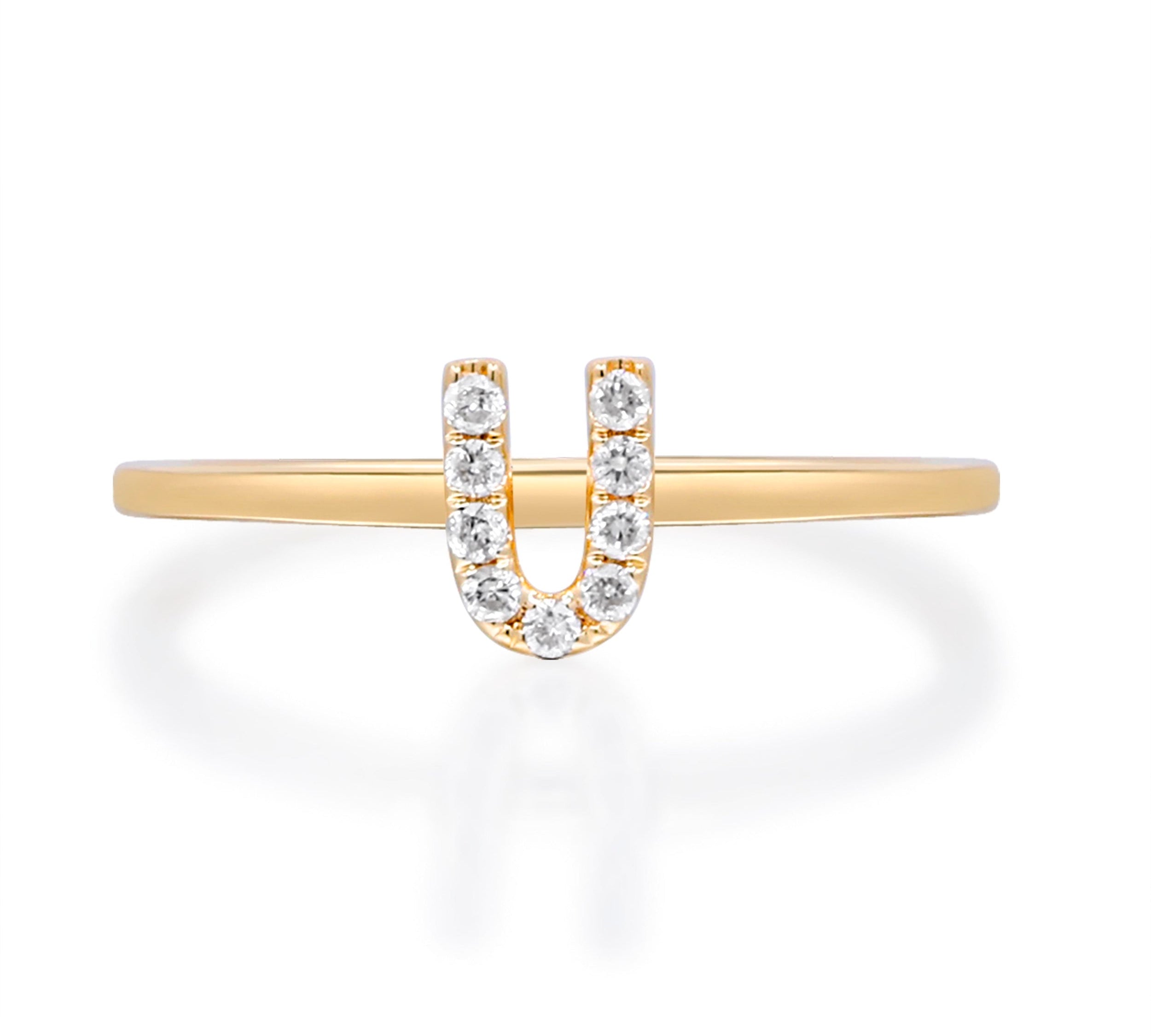 U Initial 14K Yellow Gold Round-Cut White Diamond Ring