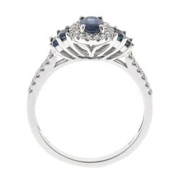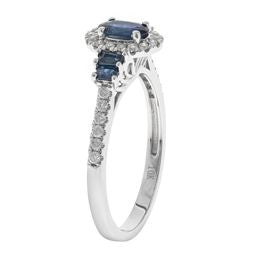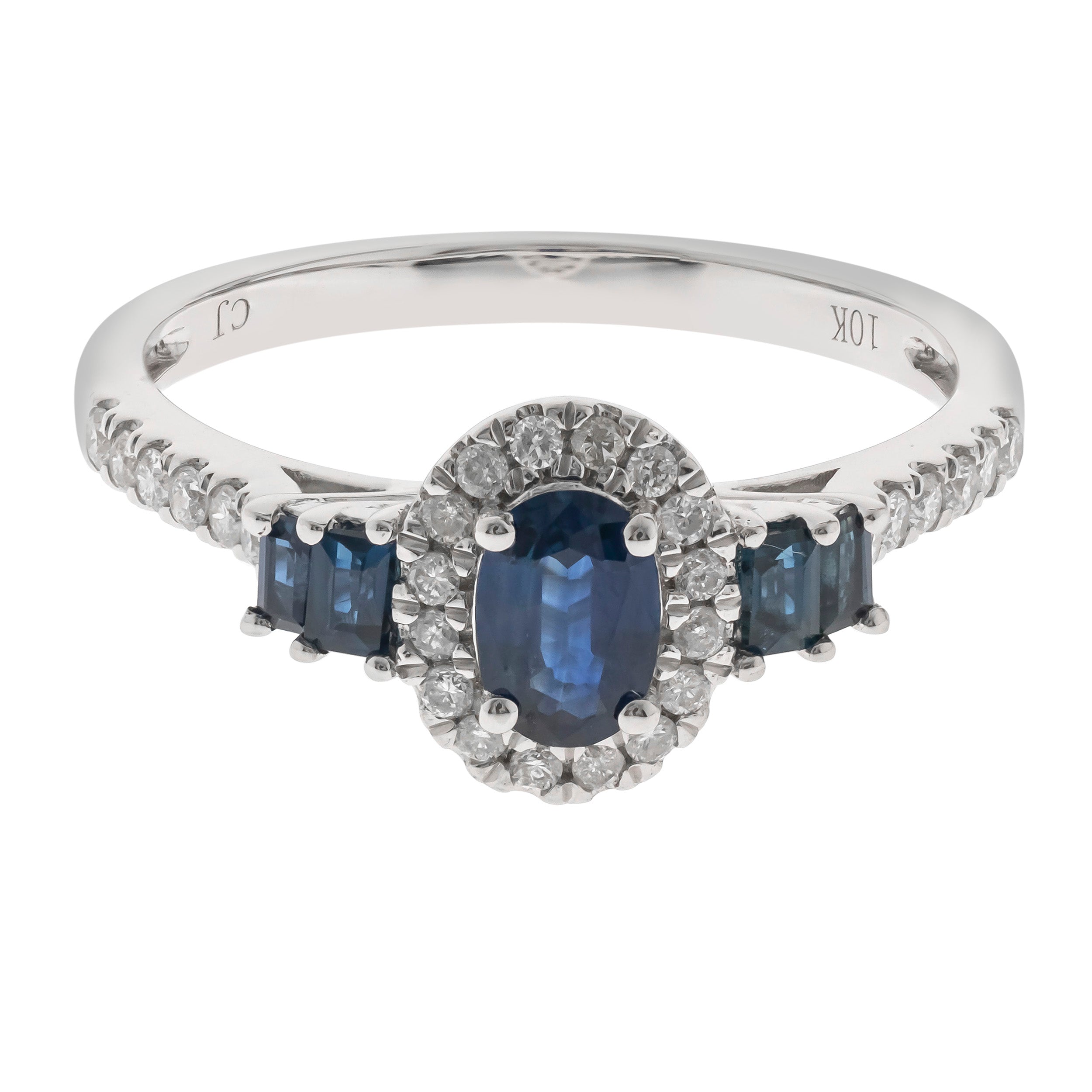 Decorate yourself in elegance with this Ring is crafted from 10-karat White Gold by Gin & Grace Ring. This Ring is made up of Oval-Cut Ceylon Blue Sapphire (1 Pcs) 0.54 Carat, 3.5x2 mm Baguette-cut (4 Pcs) 0.33 Carat and Round-cut White Diamond (28 Pcs) 0.25 Carat. This Ring is weight 2.36 grams. This delicate Ring is polished to a high finish shine.
