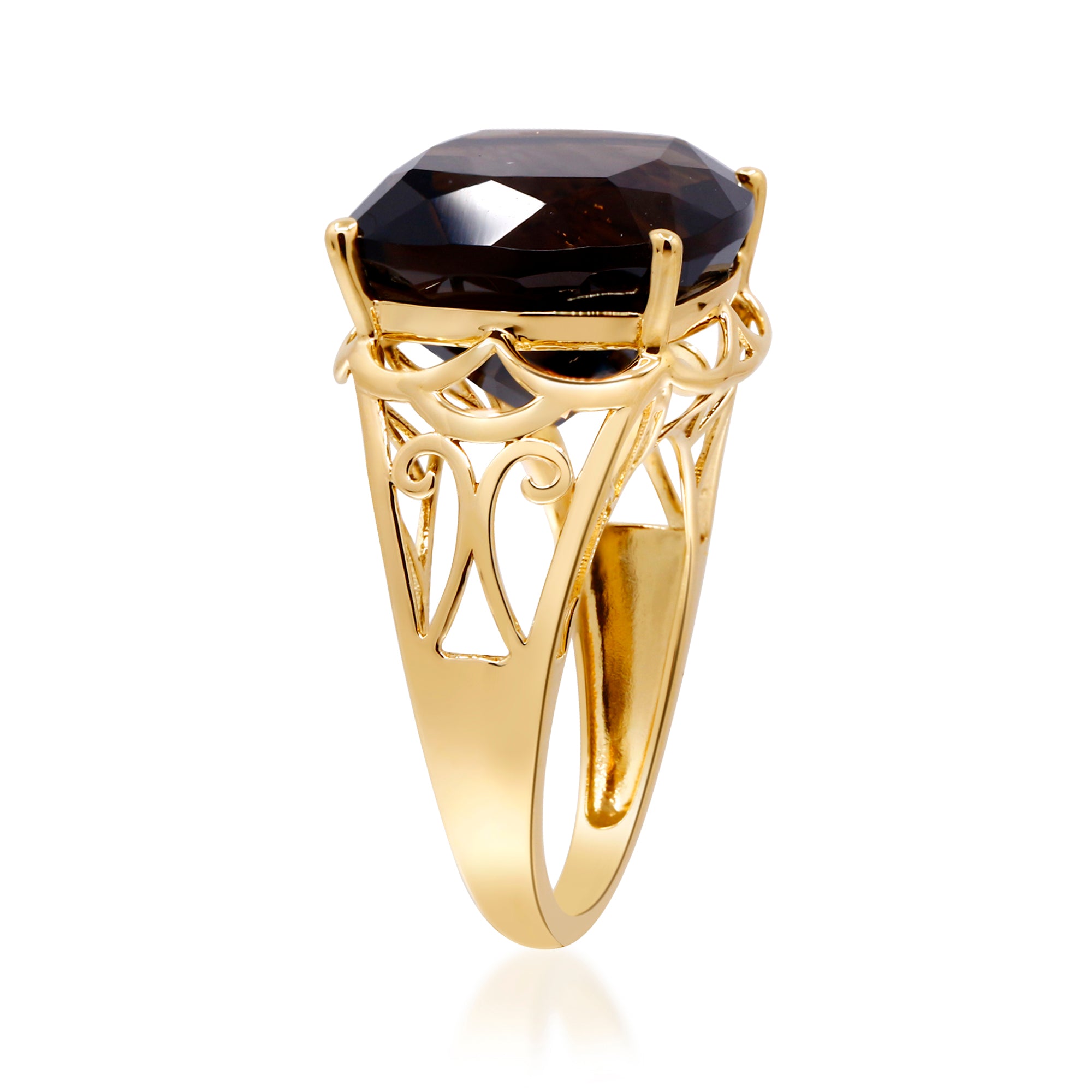 Decorate yourself in elegance with this Ring is crafted from 10-karat Yellow Gold by Gin & Grace. This Ring is made up of 14.0 mm smoky quartz Cushion-cut (1 pcs) 12.83 carat. This Ring is weight 2.98 grams. This delicate Ring is polished to a high finish shine.