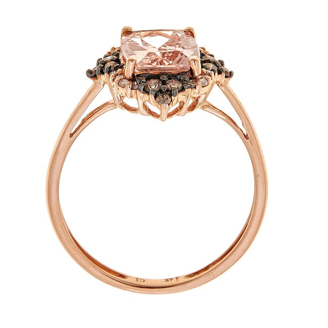 This beautiful cushion cut Genuine Madagascar Morganite and Gin& Grace Natural brown diamond ring is the perfect way to adorn yourself in luxury and elegance. The classy ring is spruced up with 1/5 carat of glimmering diamonds. Gemstone colors: Pink Gemstone shapes: Cushion-cut One Prong-seat Cushion-cut Genuine Madagascar Morganite measures 7 mm wide x 9 mm long Gemstone weight:1.93 carats Total gemstone weight:1.93 carats Diamonds:16 Diamond cut: Natural Round Diamond measurements: Each measures 1 mm Diamond weight: 0.06 carat Color: G-H Clarity: I1-I2 Setting: Prong Diamonds:12 Diamond cut: Natural Round Diamond measurements: Each measures Free Diamond weight: 0.17 carat Color: Brown Clarity: I1-I2 Setting: Prong Metal: 14K Rose Gold Finish: High polish Metal weight: 2.08 grams Ring setting dimensions: 18mm wide x 22 mm long x 4 mm deep Band dimensions: 2 mm wide