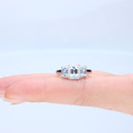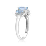 Decorate yourself in elegance with this Ring is crafted from 14-karat white Gold by Gin & Grace. This Ring is made up of 3*5 mm Brazilian Aquamarine Emerald cut (2 pcs) 0.58 carat, 4*6 mm aquamarine Emerald cut (1 pcs) 0.54Â carat Round-cut Diamond (44 pcs) 0.19 Carat. This Ring is weight 2.39 grams. This delicate Ring is polished to a high finish shine.