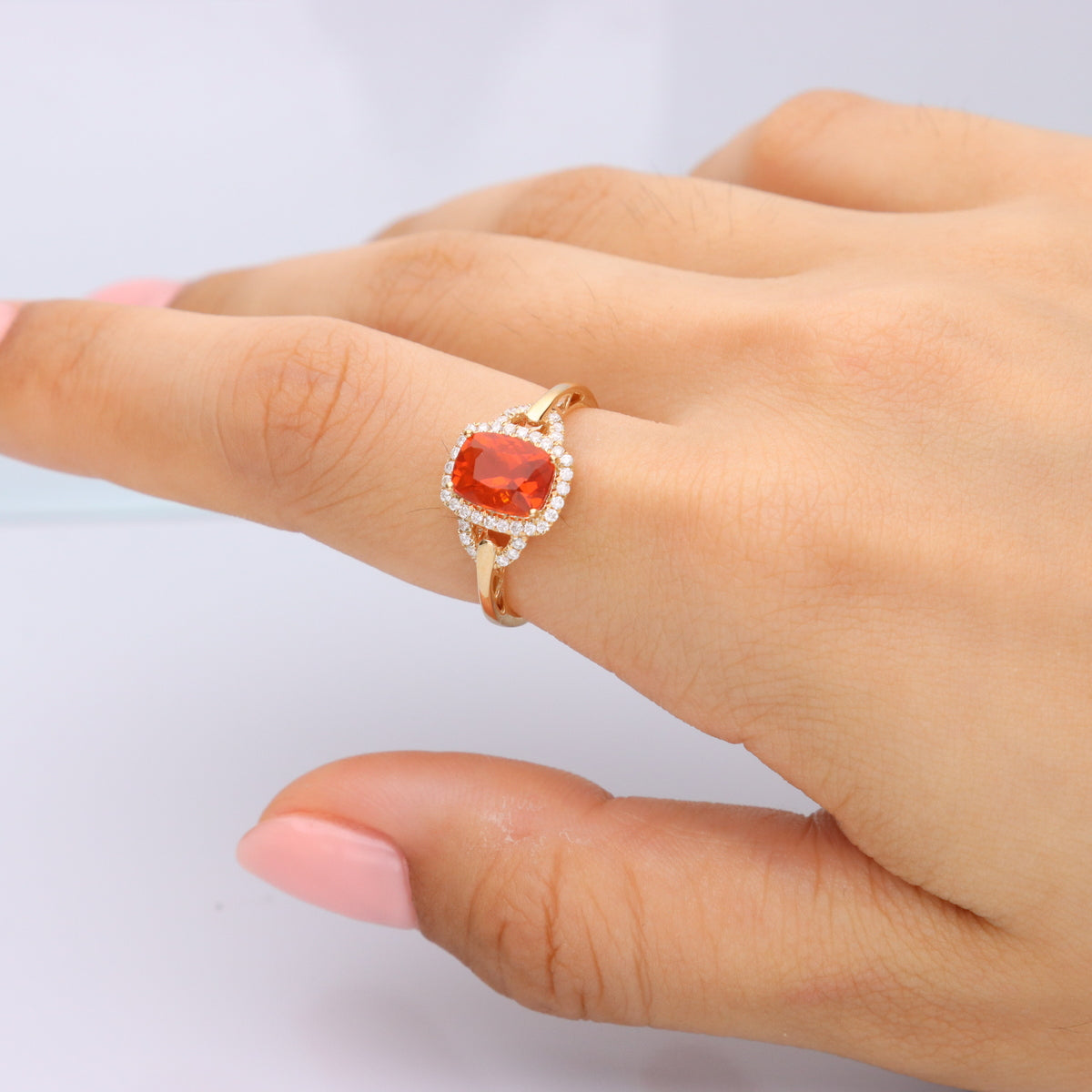 Emery 14K Yellow Gold Cushion-Cut Mexican Fire Opal Ring