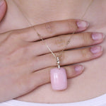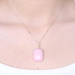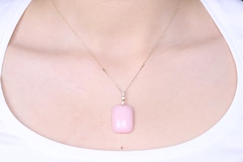 Decorate yourself in elegance with this Pendant is crafted from 14-karat Yellow Gold by Gin & Grace. This Pendant is made up of Cushion-Cut Peruvian Pink Opal (1 Pcs) 24.08 carat and round-cut white Diamond (8 pcs) 0.08 carat. This Pendant is weight 1.60 grams. This delicate Pendant is polished to a high finish shine.