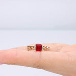 Stunning, timeless and classy eternity Vintage ring. Decorate yourself in luxury with this Gin & Grace ring. This ring is made up of 5*7MM Emerald-Cut Prong Setting Natural Mexican Fire Opal (1 pcs) 0.66 Carat and Natural Round-Cut Prong Setting Diamond (6 pcs) 0.04 Carat and accent stones for a lovely design. This ring is weight 2.50 grams. The ring is crafted of shining 14-karat Yellow Gold and is completed by a highly polished finish.