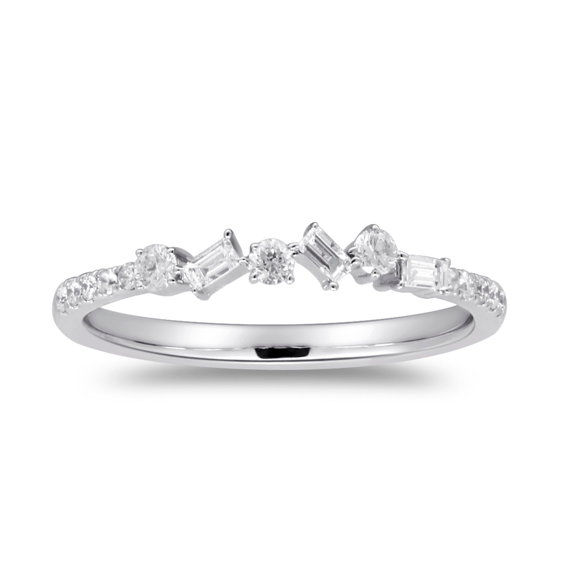 Decorate yourself in elegance with this Ring is crafted from 14K White Gold by Gin & Grace Ring. This Ring is made up of Round-Cut White Diamond (16 Pcs) 0.24 Carat. This Ring is weight 1.57 grams. This delicate Ring is polished to a high finish shine.