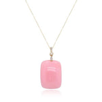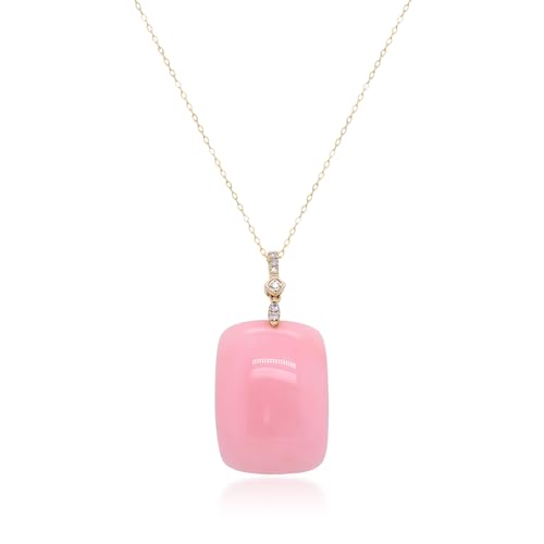 Decorate yourself in elegance with this Pendant is crafted from 14-karat Yellow Gold by Gin & Grace. This Pendant is made up of Cushion-Cut Peruvian Pink Opal (1 Pcs) 24.08 carat and round-cut white Diamond (8 pcs) 0.08 carat. This Pendant is weight 1.60 grams. This delicate Pendant is polished to a high finish shine.