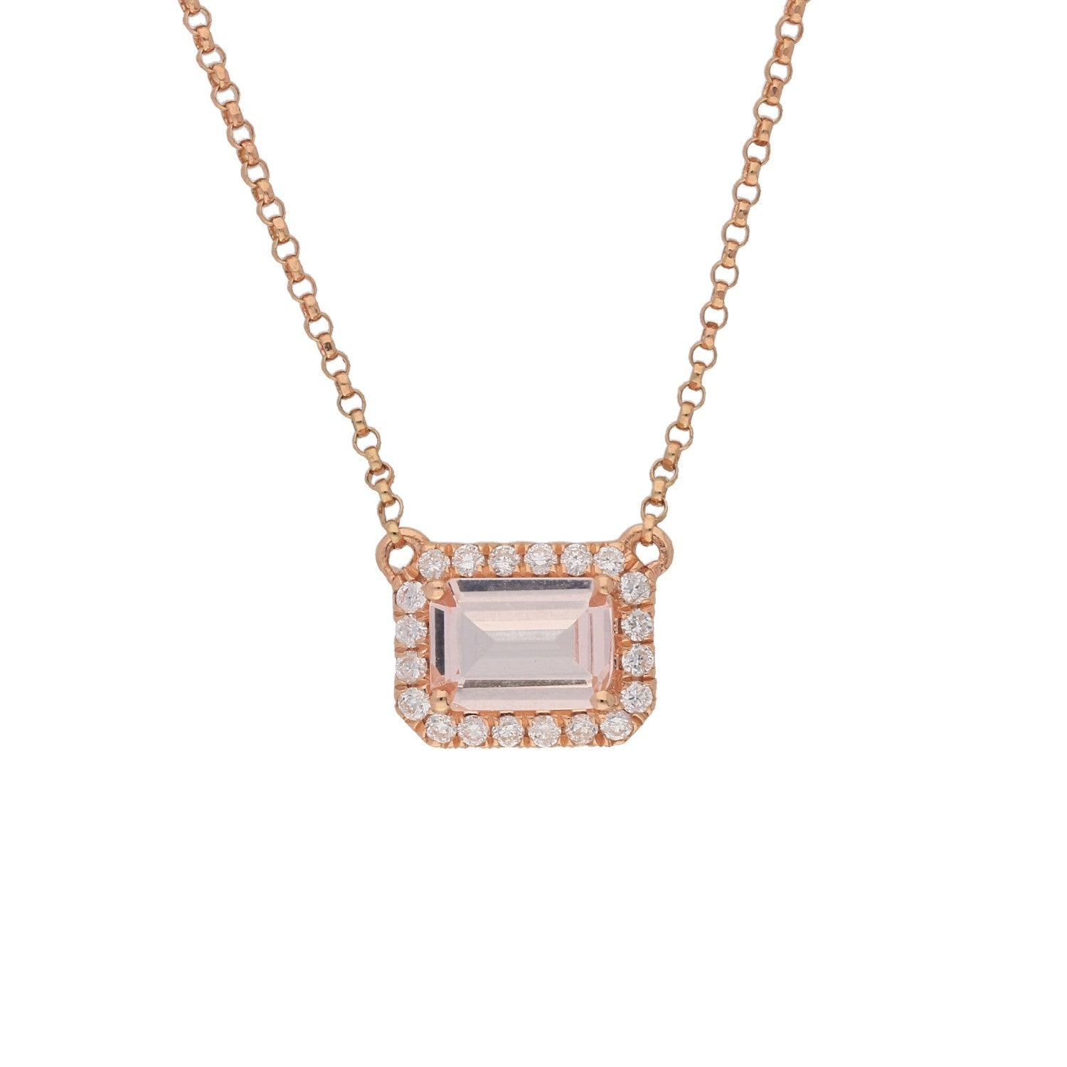 Beautifully handcrafted Madagascar Morganite Pendant that features 0.89 -carat classic Emerald cut Morganite gemstone Rose Round-cut Diamond accents