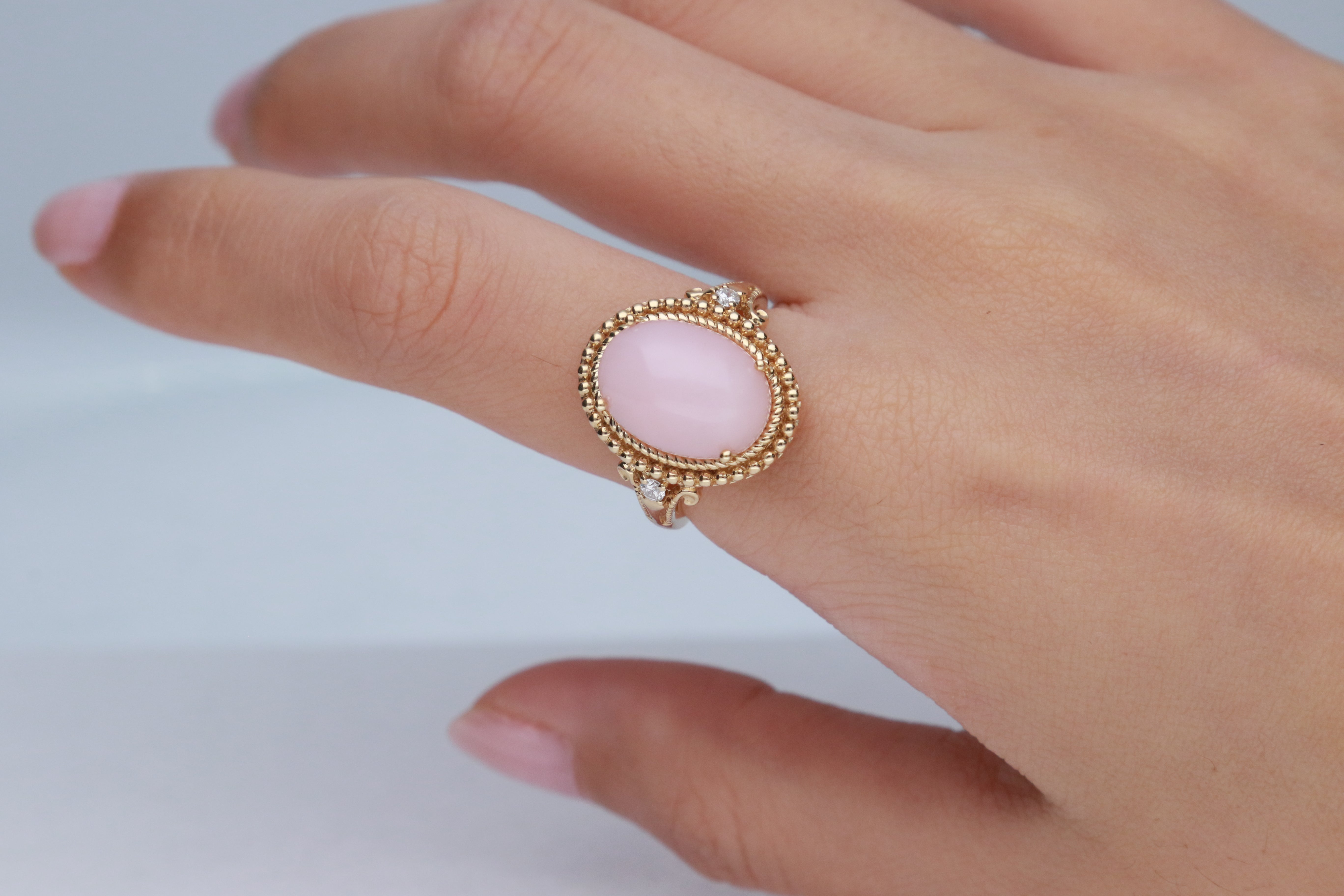 Eva 14K Yellow Gold Oval-Tab Peruvian Pink Opal Ring