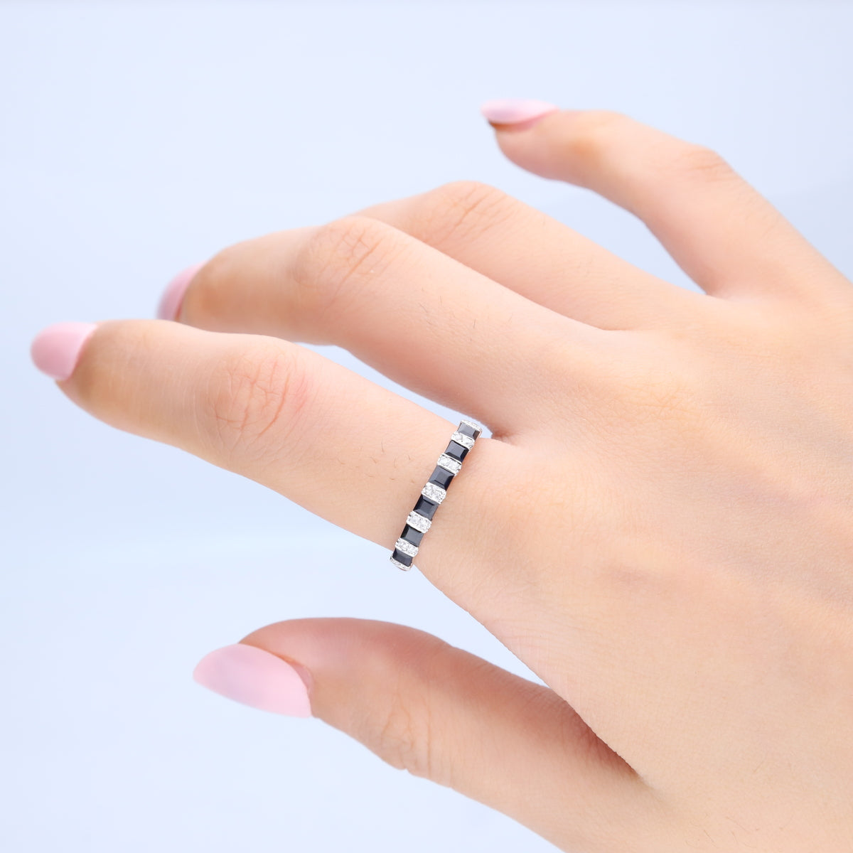 Decorate yourself in elegance with this Ring is crafted from 10-karat White Gold by Gin & Grace Ring. This Ring is made up of 2.5 mm Square-Cut Ceylon Blue Sapphire 0.83 Carat and Round-cut White Diamond (14 Pcs) 0.07 Carat. This Ring is weight 1.66 grams. This delicate Ring is polished to a high finish shine.