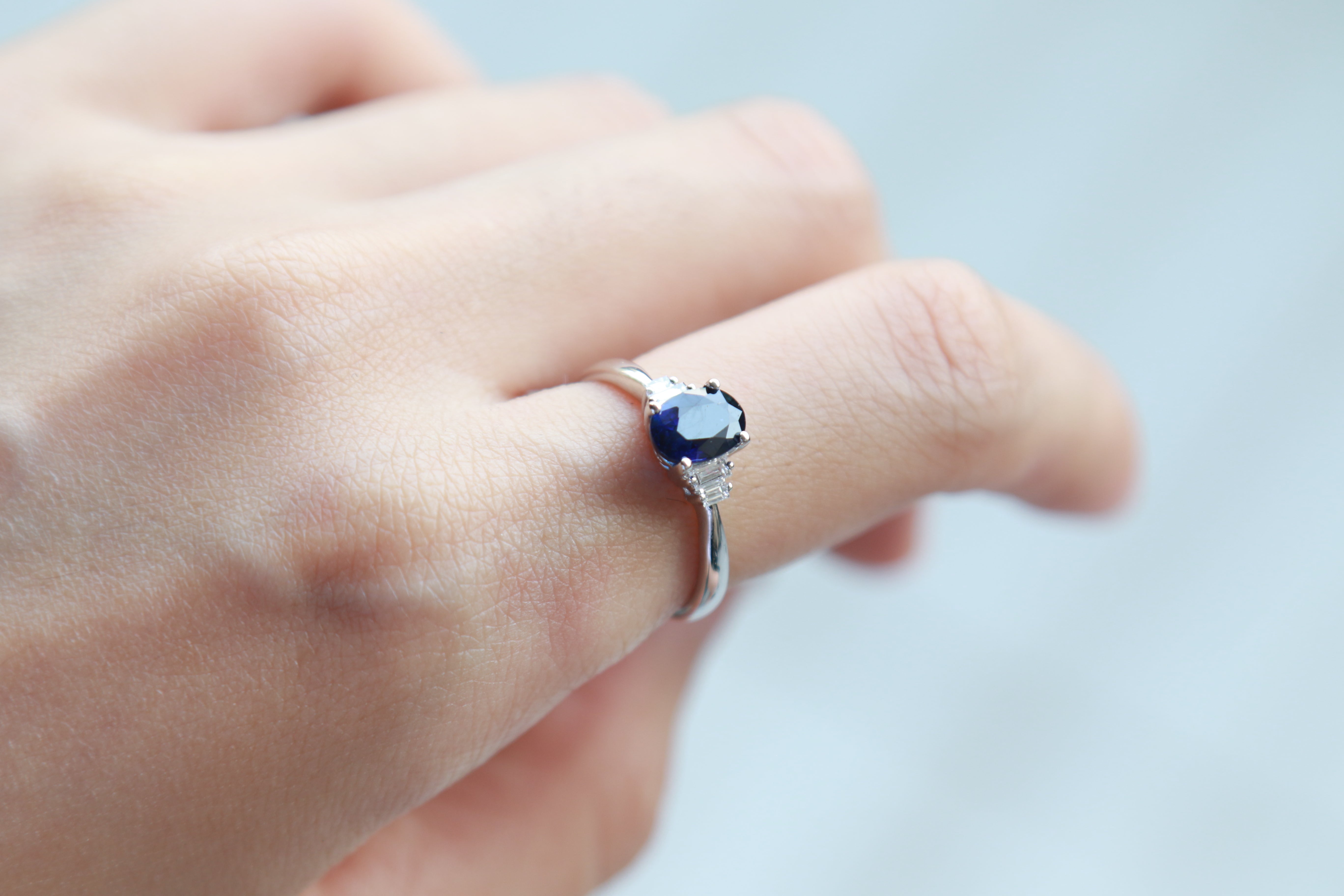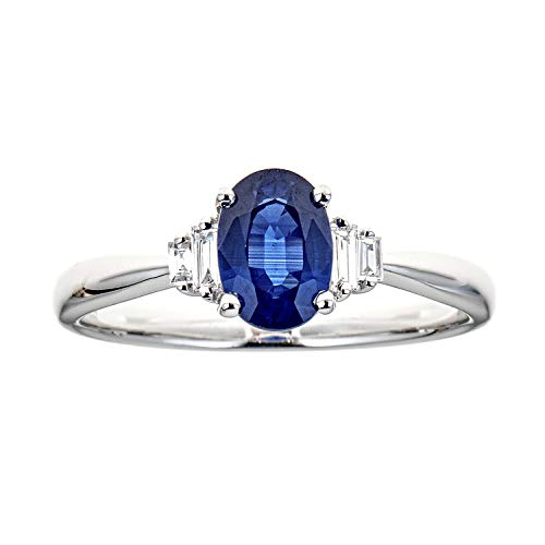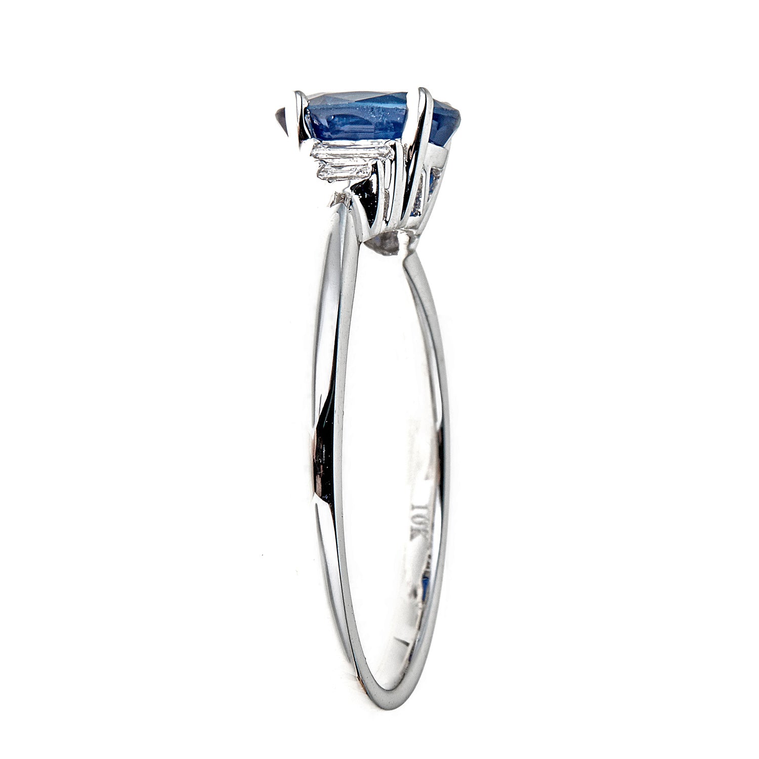 Stunning, timeless and classy eternity engagement ring. Decorate yourself in luxury with this Gin & Grace ring. The 10k White Gold jewelry boasts Baguette-Cut Channel Setting Ceylon Blue Sapphire (1 pcs) 0.94 Carat and Round-Cut Prong Setting Diamond (4 pcs) 0.10 Carat accent stones for a lovely design. This ring is weight 1.86 grams. Crafted with 10k White Gold, this delicate Ring is polished to a high finish shine