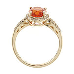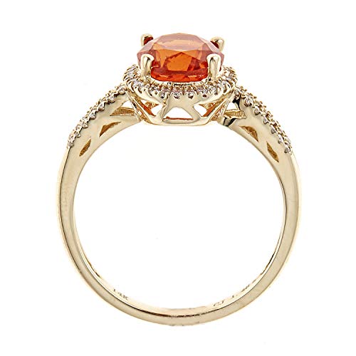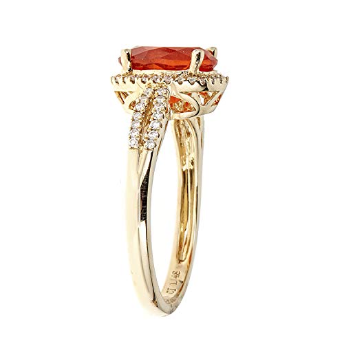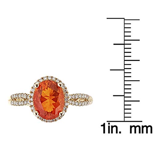 This Wedding ring from Gin & Grace features an oval-cut orange color Natural Mexican Fire Opal that will complement your loved one's unique sense of style. Crafted from 14k Yellow Gold and accented with round-cut diamonds for a glittering finish that is sure to turn heads. The diamonds color white and complement the bright orange hue of the gemstone.