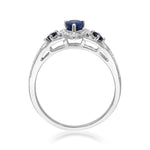 Decorate yourself in elegance with this Ring is crafted from 14-karat White Gold by Gin & Grace. This Ring is made up of 6x4 mm Pear-Cut Ceylon Blue Sapphire (1 pcs) 0.49 carat, 2.0 mm Square-cut Blue Sapphire (2 pcs) 0.13 carat and Round-cut White Diamond (24 Pcs) 0.21 Carat. This Ring is weight 2.38 grams. This delicate Ring is polished to a high finish shine.