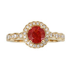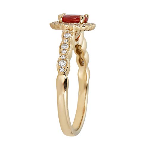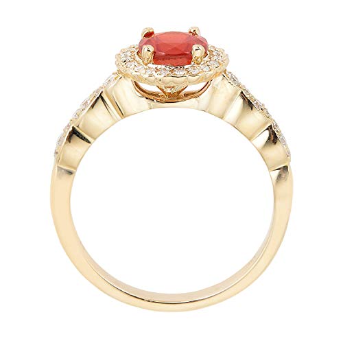 Stunning, timeless and classy eternity Vintage ring. Decorate yourself in luxury with this Gin & Grace ring. This ring is made up of Round-Cut Prong Setting Mexican Fire Opal (1pcs) 0.60 Carat and Round-Cut Prong Setting Diamond (34pcs) 0.18 Carat and accent stones for a lovely design. This ring is weight 3.34 grams. The ring is crafted of shining 14-karat Yellow Gold and is completed by a highly polished finish.