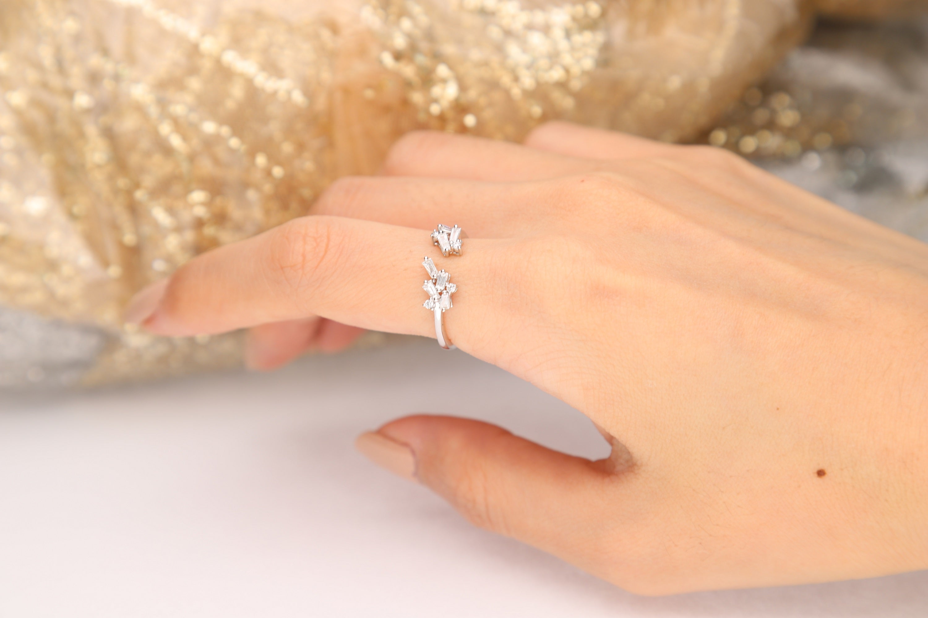 Stunning, timeless and classy eternity Unique Ring. Decorate yourself in luxury with this Gin & Grace Ring. The 14K White Gold jewelry boasts Natural Round & Baguette cut white Diamond (11 Pcs) 0.30 Carat, accent stones for a lovely design. This Ring is weight 1.95 grams. Crafted with 14K White Gold, this delicate Ring is polished to a high finish shine.
