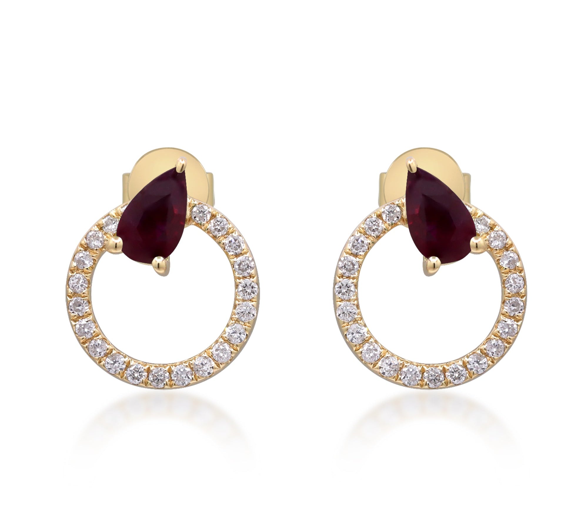 Mindy 14K Yellow Gold Pear-Cut Mozambique Ruby Earring