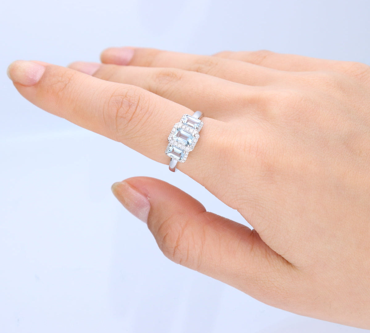 Alohi 14K White Gold Emerald-Cut Brazilian Aquamarine Ring