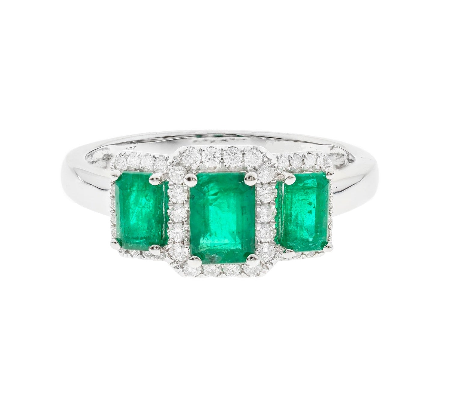 Evangeline 10K White Gold Emerald-Cut Zambian Emerald Ring