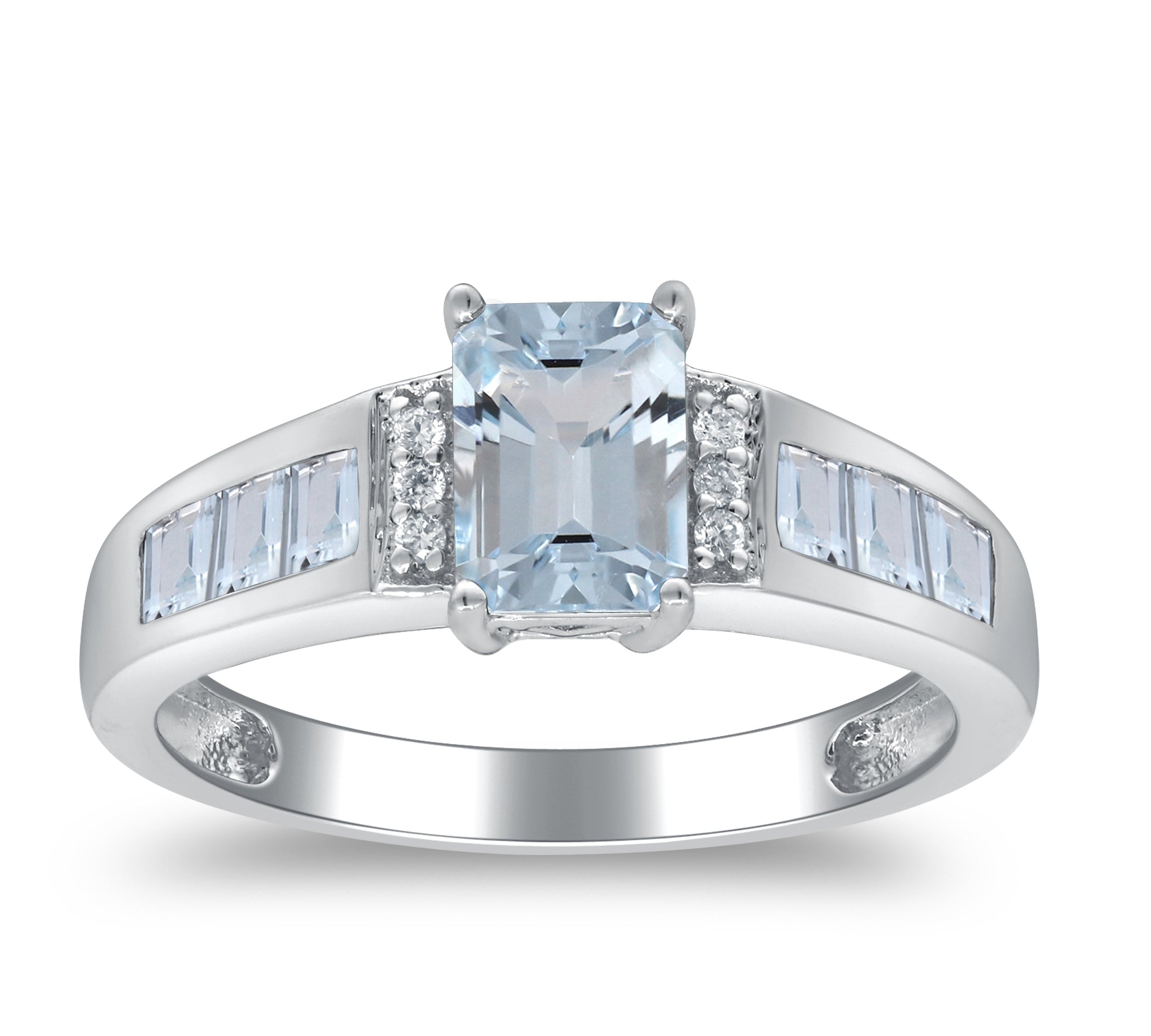 Charlie 10K White Gold Emerald-Cut Aquamarine Ring
