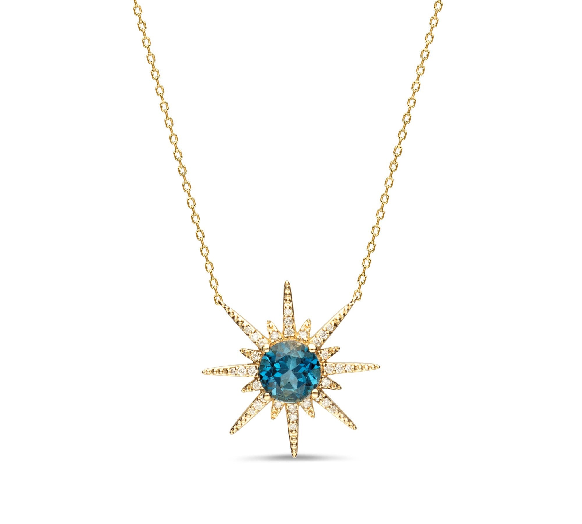 Stella 14K Yellow Gold Round-Cut Brazilian London Blue Topaz Necklace