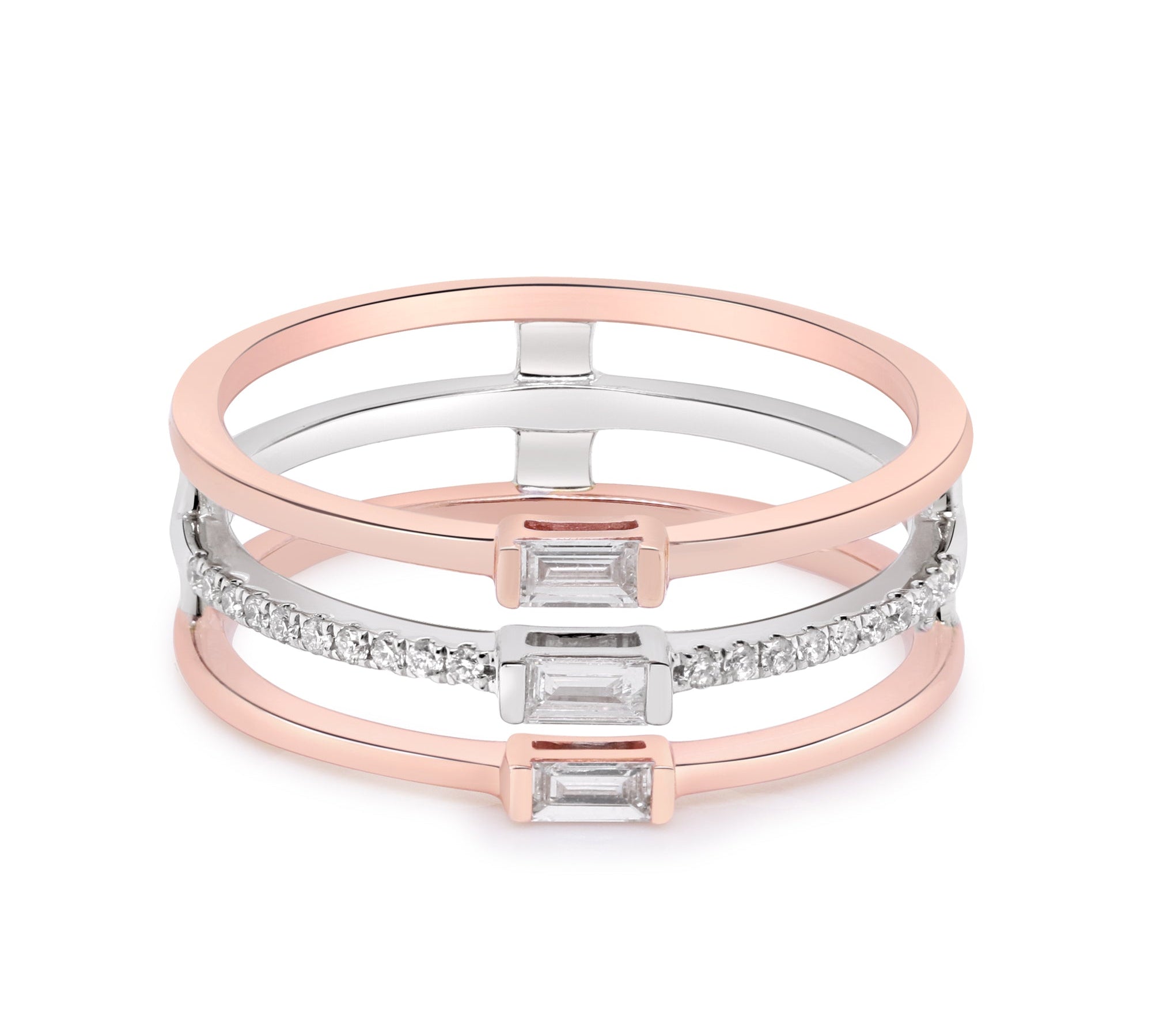 Jasmine 14K Two Tone Gold Baguette-Cut White Diamond Ring