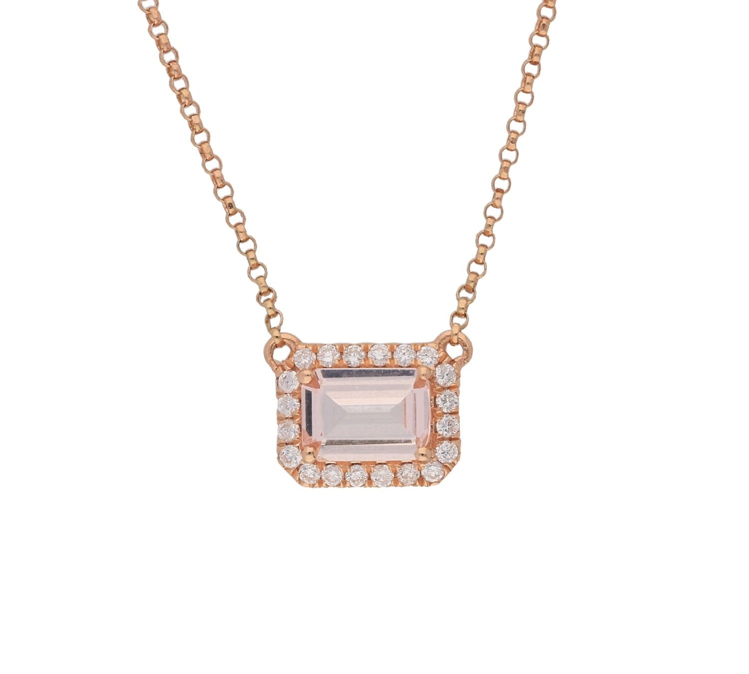 Eliza 18K Rose Gold Emerald Cut Madagascar Morganite Pendant