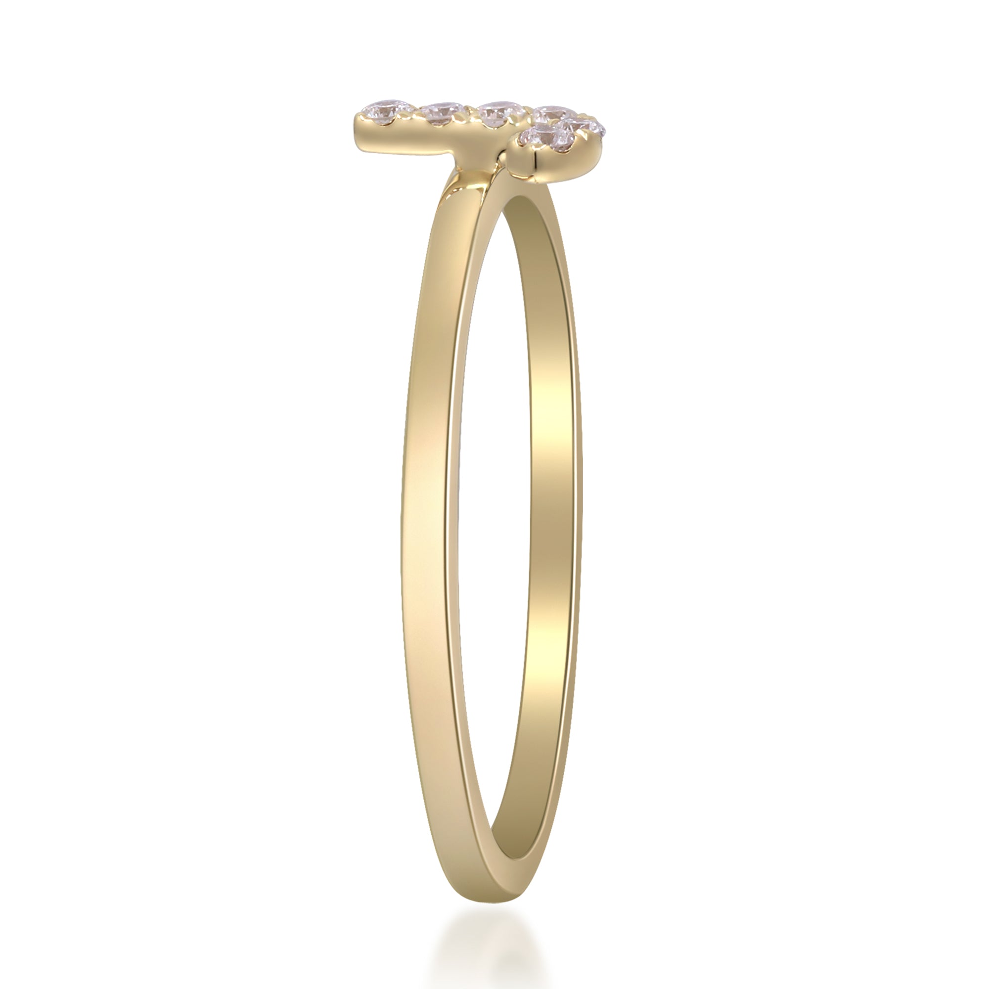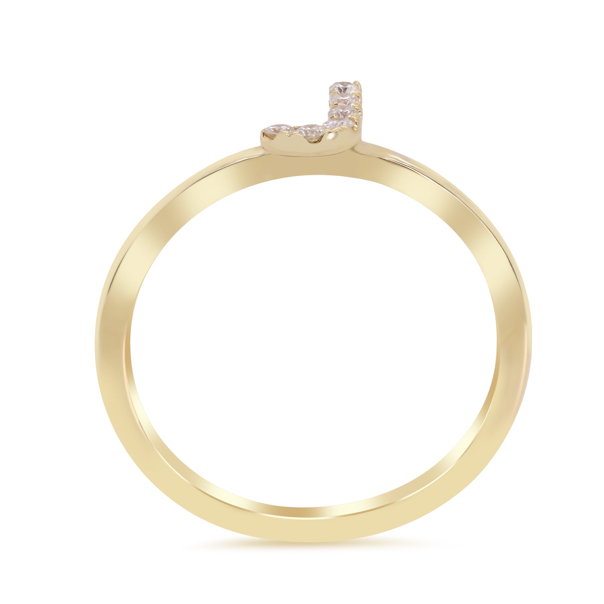 J Initial 14K Yellow Gold Round-Cut White Diamond Ring