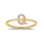 Q Initial 14K Yellow Gold Round-Cut White Diamond Ring