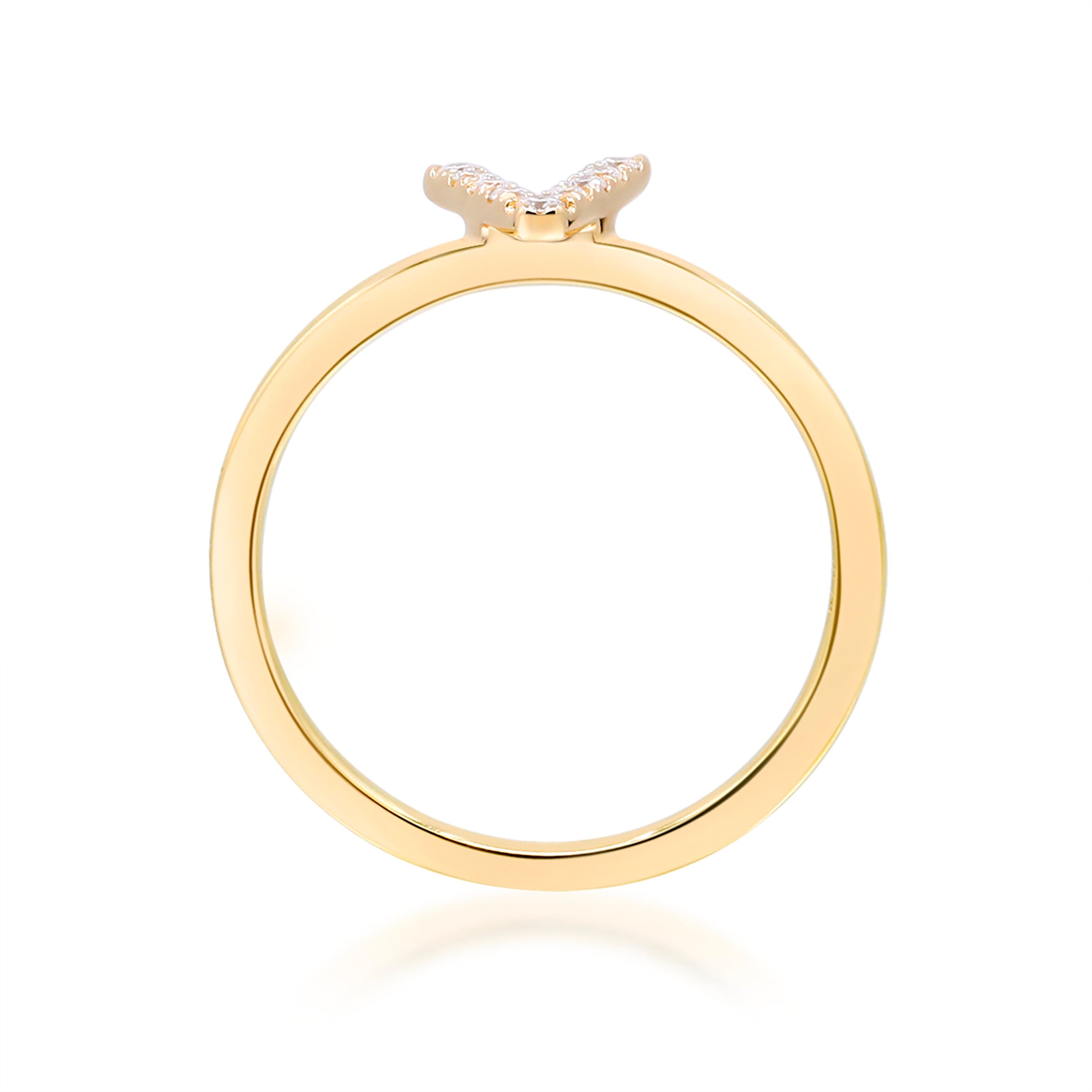 V Initial 14K Yellow Gold Round-Cut White Diamond Ring