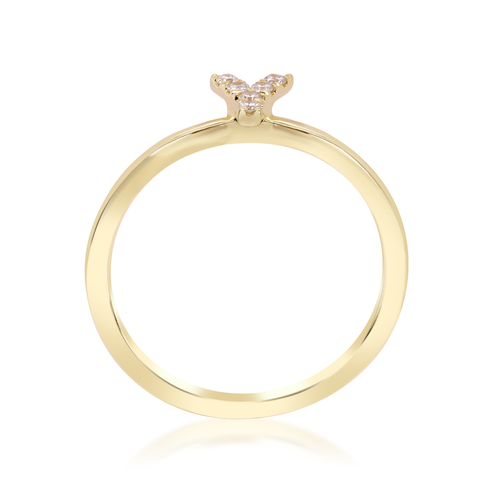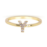 Y Initial 14K Yellow Gold Round-Cut White Diamond Ring
