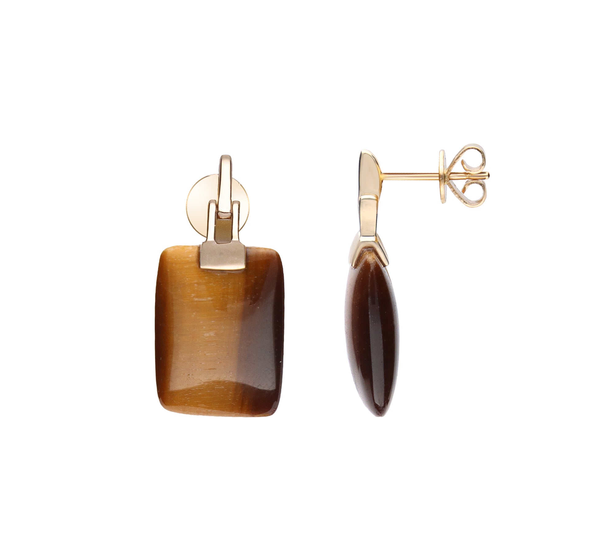 Nancy 14K Yellow Gold Cushion-Cut Tiger Eye Earrings
