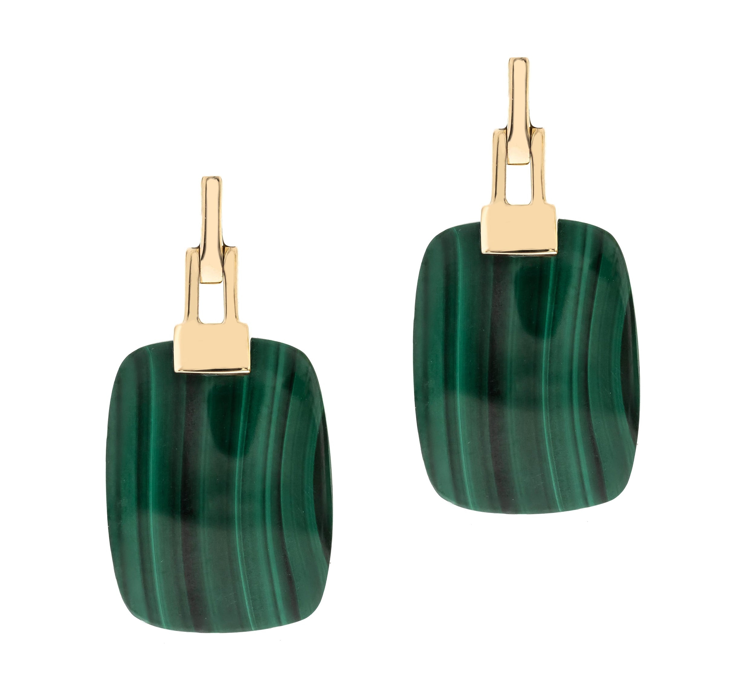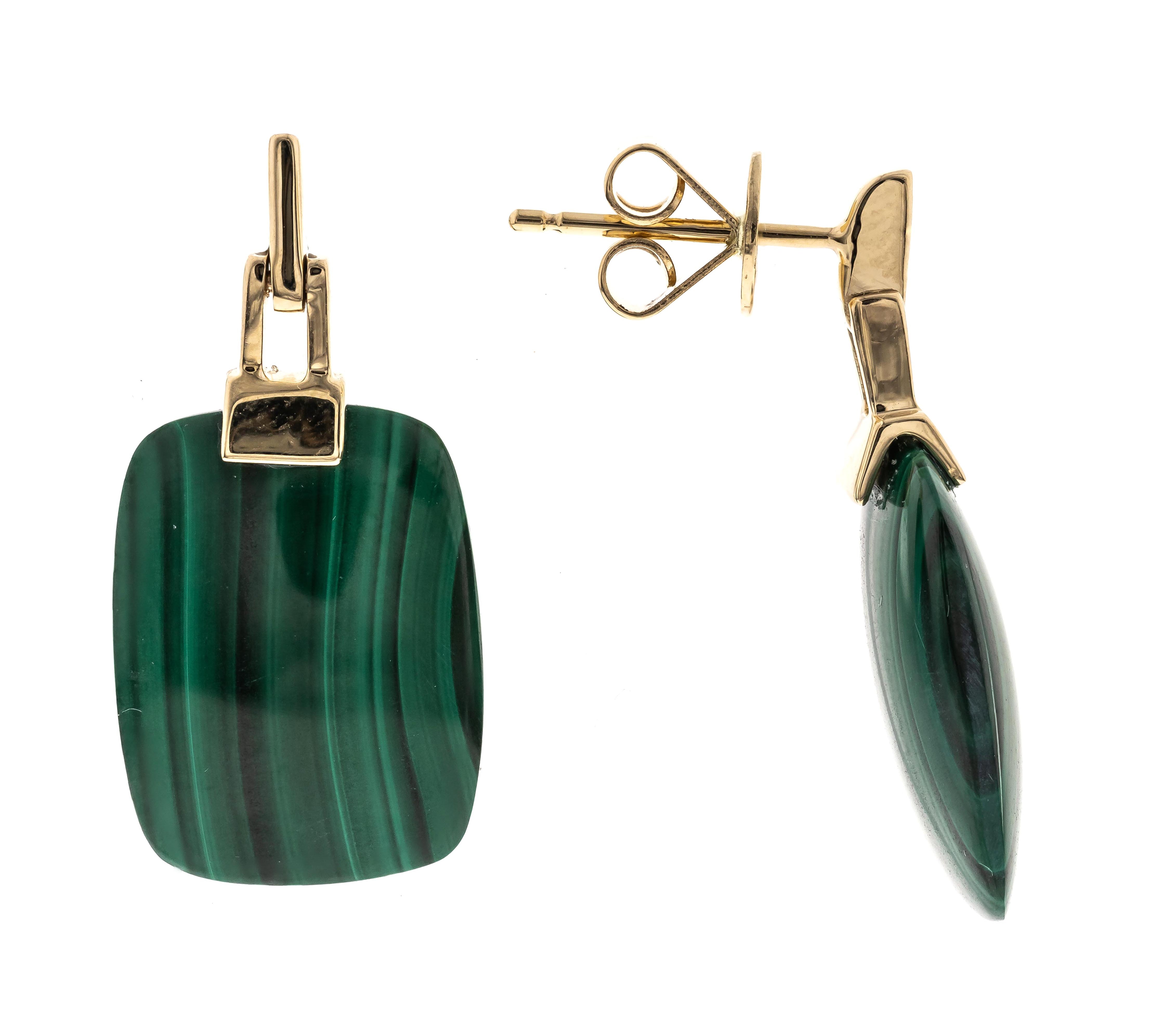 Indigo 14K Yellow Gold Cushion-Cut Malachite Earrings
